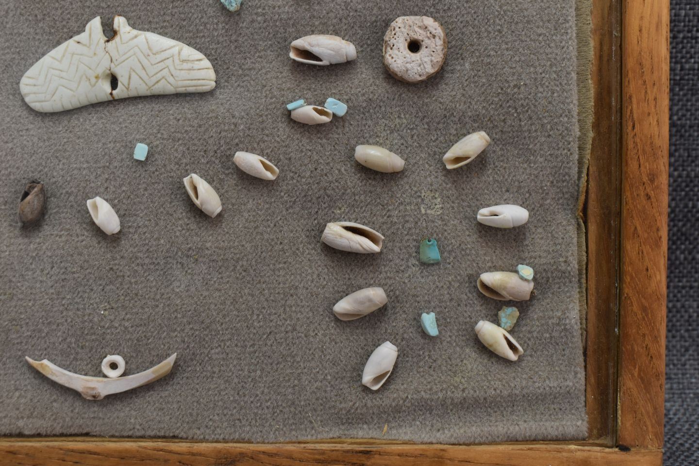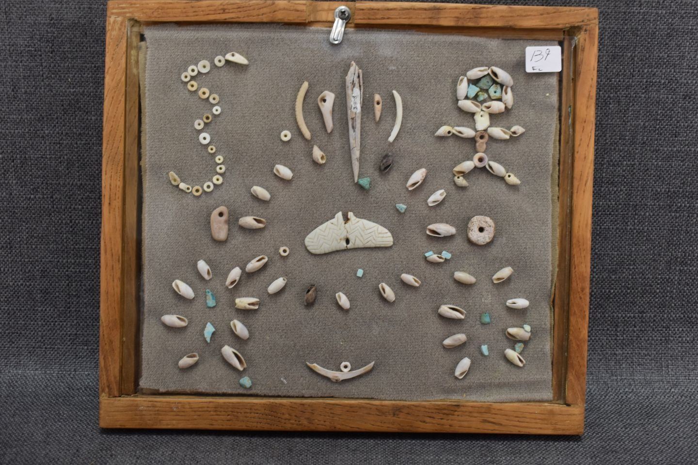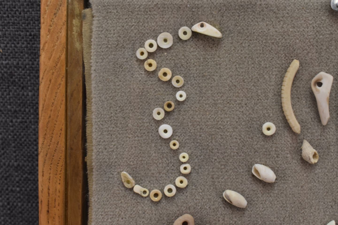 prehistoric Anasazi Indian shell beads and pendants with pieces of turquoise 10.5" x 12"