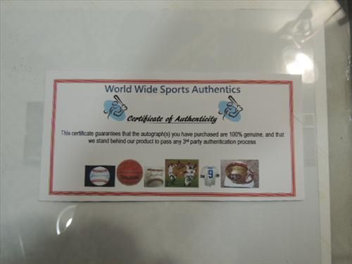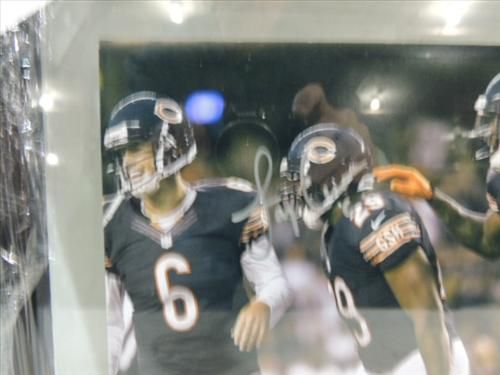 FRAMED 14X12 FOOTBALL PHOTO AUTOGRAPHED JAY CUTLER. INCLUDES COA FROM WORLD WIDE SPORTS AUTHORITY. AS SHOWN. VIEW PICTURE FOR DETAIL.