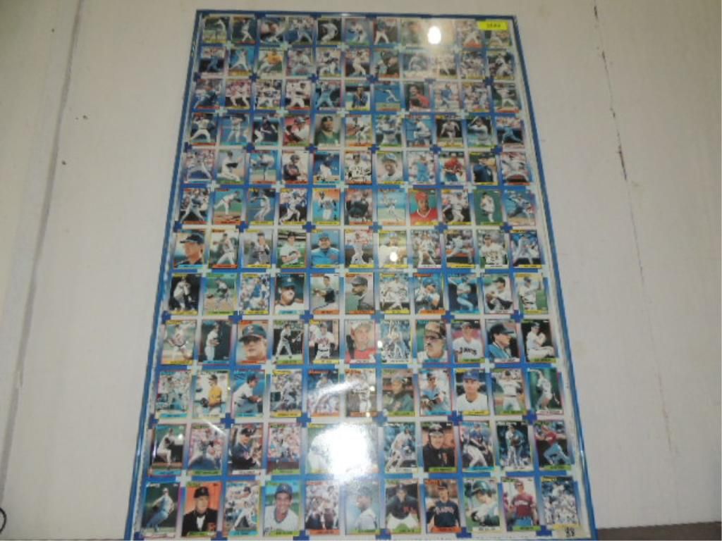 43" X 29" FRAMED 1990 TOPPS BASEBALL PLAYER CARDS UNCUT SHEET. AS SHOWN. SEE PHOTO FOR MORE DETAILS.