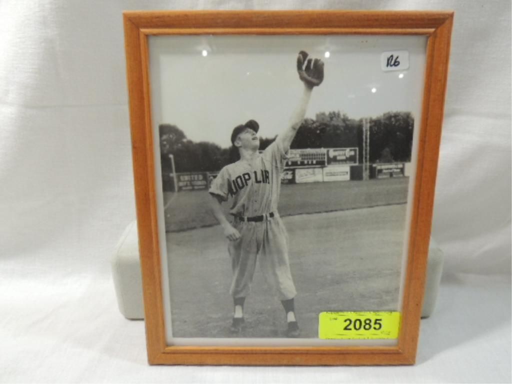 FRAMED 8X10 PHOTO OF MICKEY MANTLE WHEN HE PLAYED FOR THE JOPLIN COMETS. AS SHOWN SEE PHOTO FOR DETAILS.