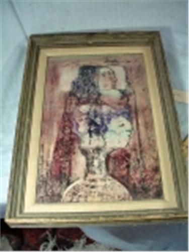 FRAMED ABSTRACT OF TWO FACES. 21" X 14.75,