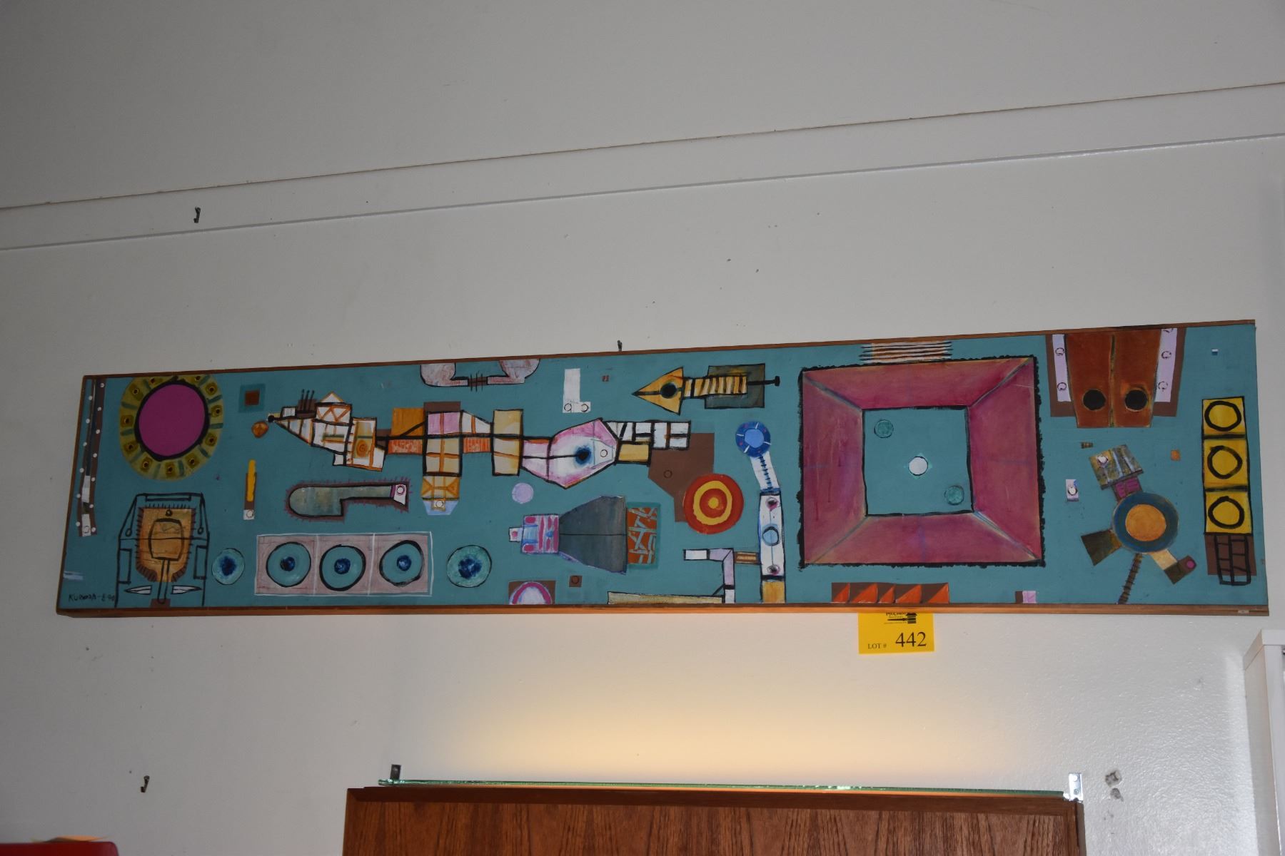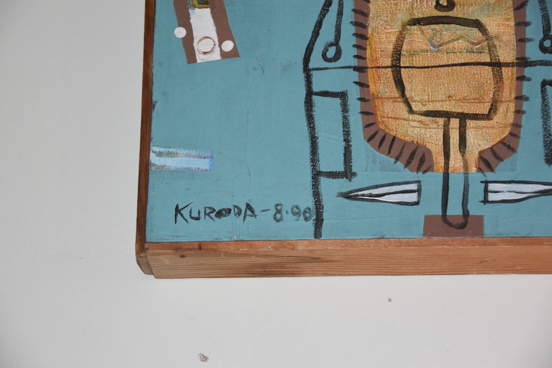 FRAMED ABSTRACT PAINTING; SIGNED KURODA-8-90 (72" X 15 1/2")