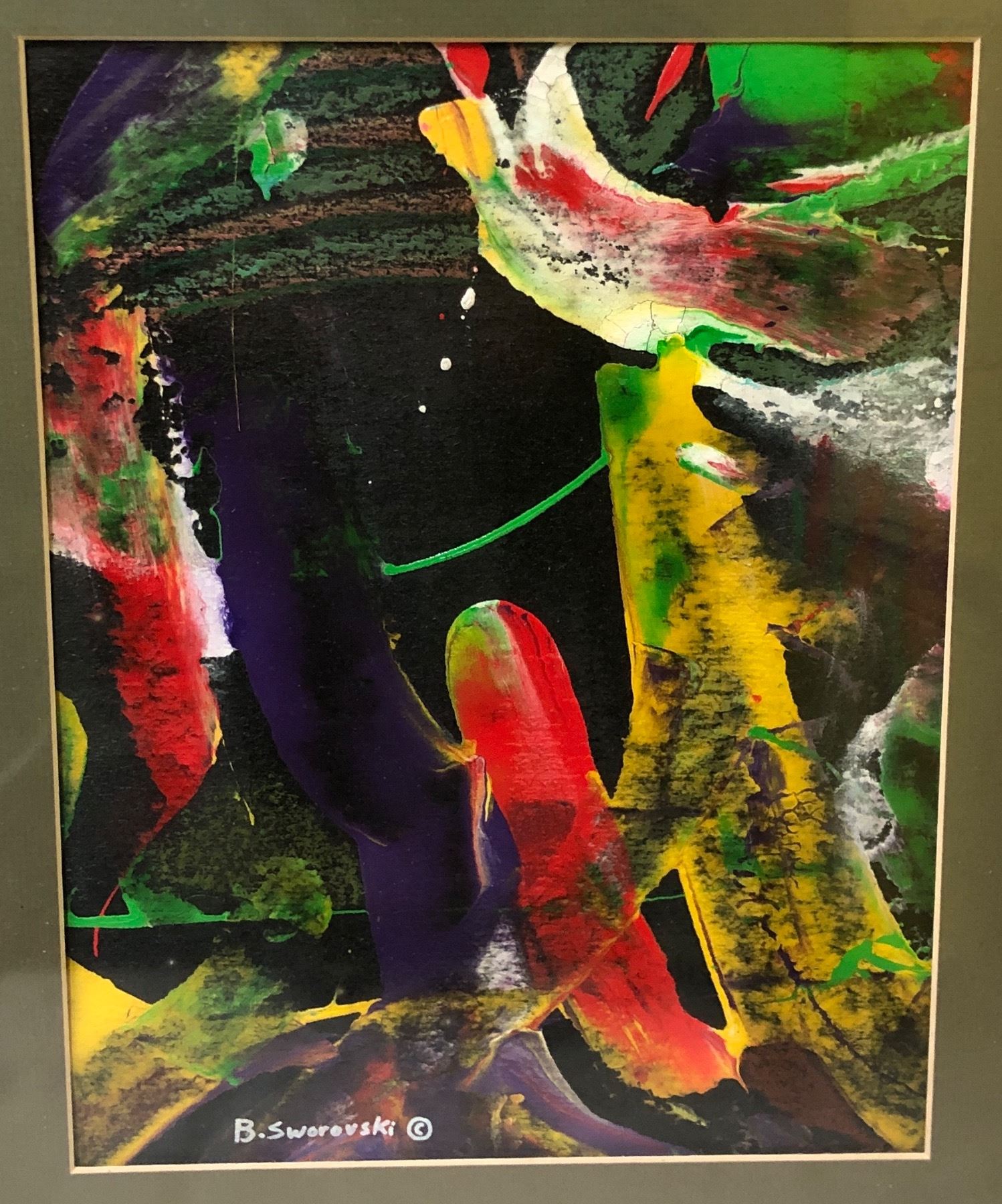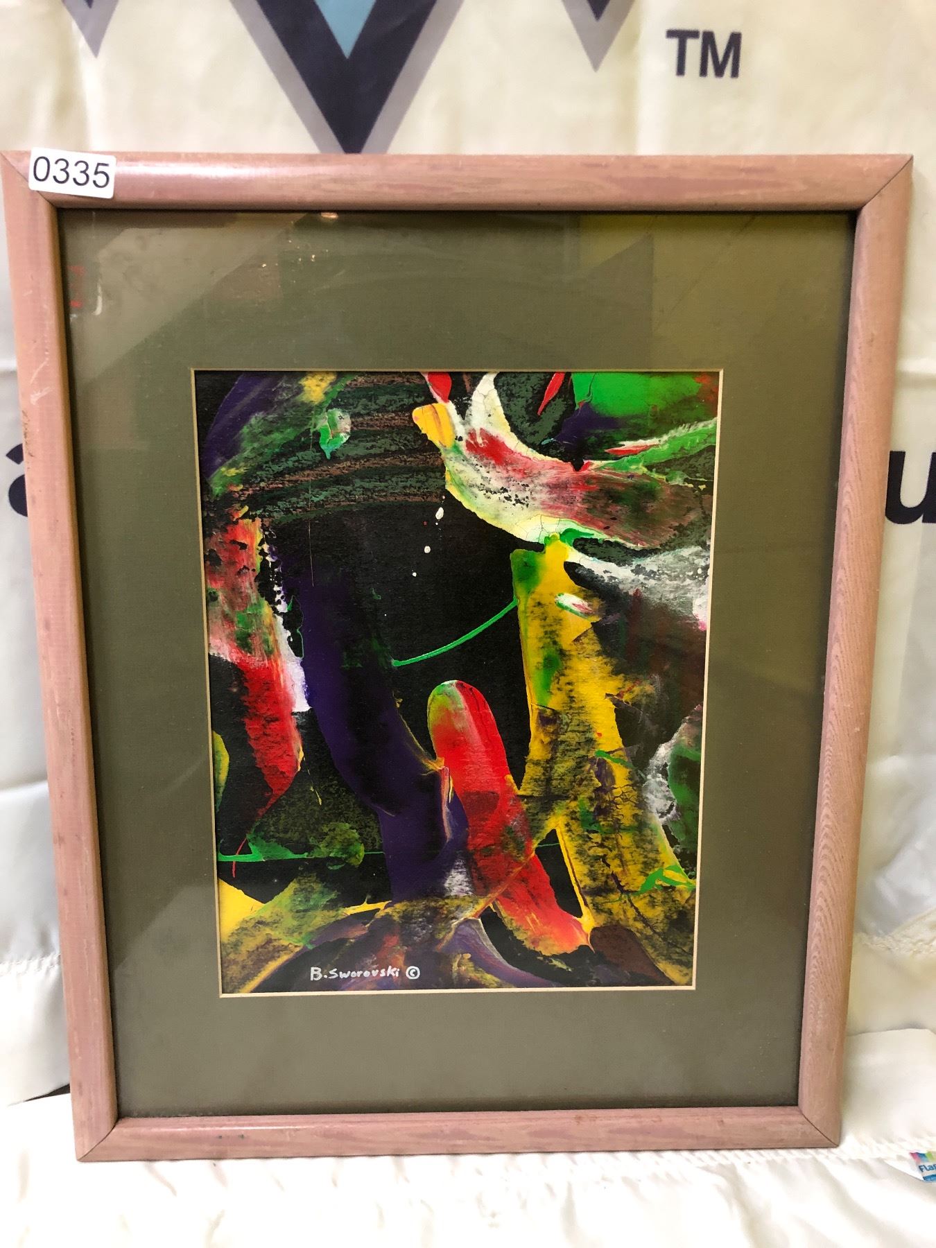 FRAMED ABSTRACT PAITING BY ARTIST B. SWOROVSKI APPROX 17.5IN X 21.5 IN
