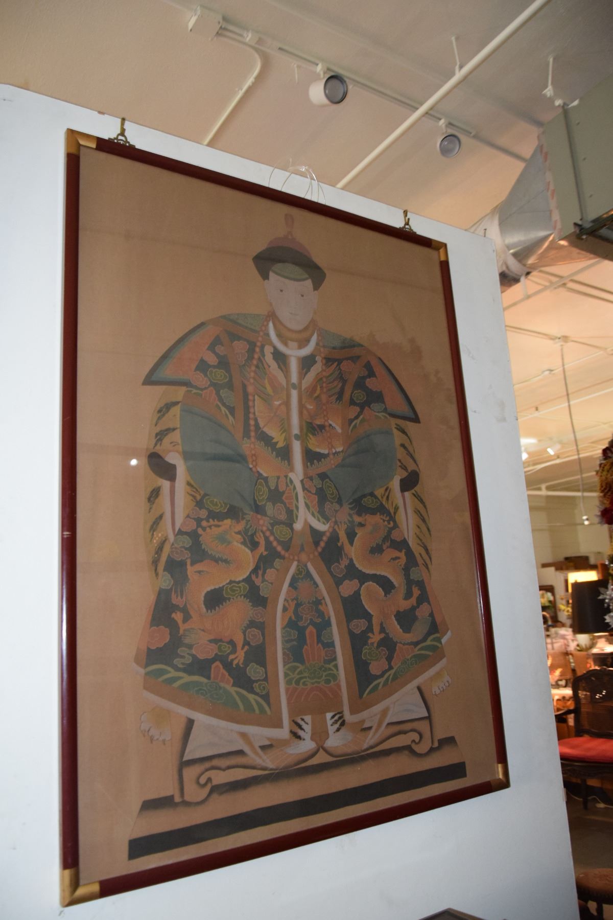 FRAMED ANCESTRAL POLYCHROME PAINTING (48" X 35 1/2" X 25")