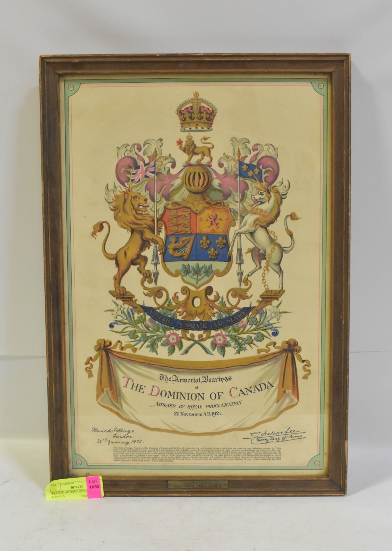 FRAMED ANTIQUE DOMINION OF CANADA 13.25" X 19.25"