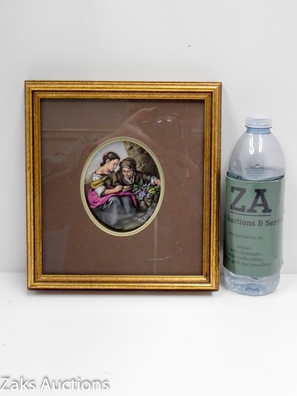 FRAMED ARTIST BARTHOLOMEW ESTEBAN MURILLO PAINTING ON ENGLAND CROWN FINE BONE CHINA MINI PLATE.