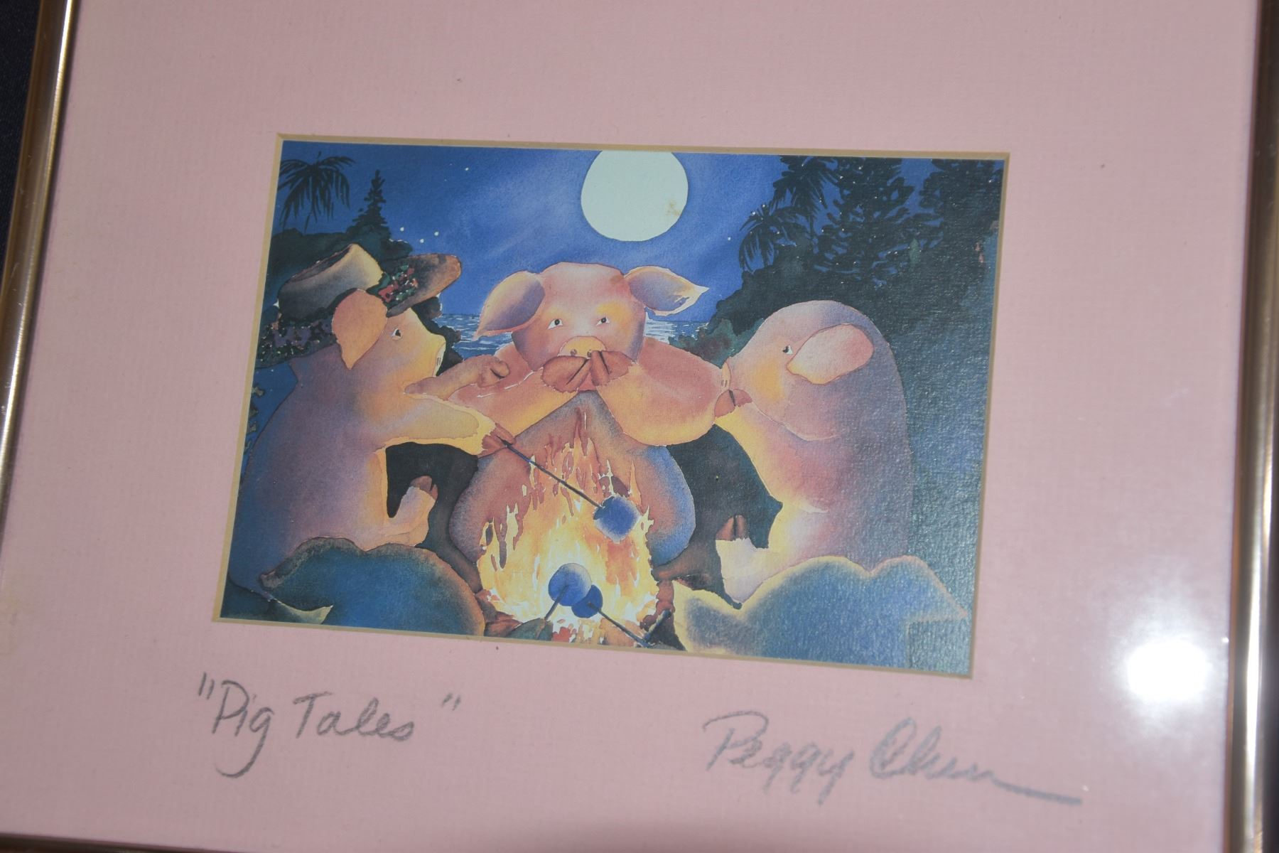 FRAMED ART PRINT, "PIG TALES"; SIGNED PEGGY CHUN (10 1/4" X 8 1/4")