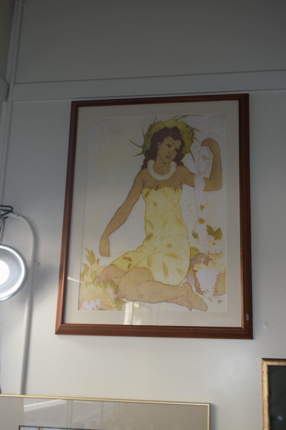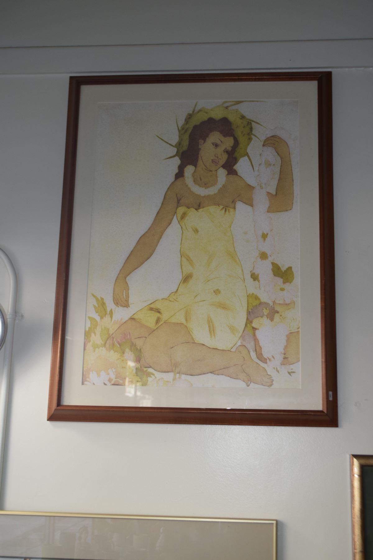 FRAMED ART PRINT; SOUTH SEAS MAIDEN MAKING LEI (26" X 34")