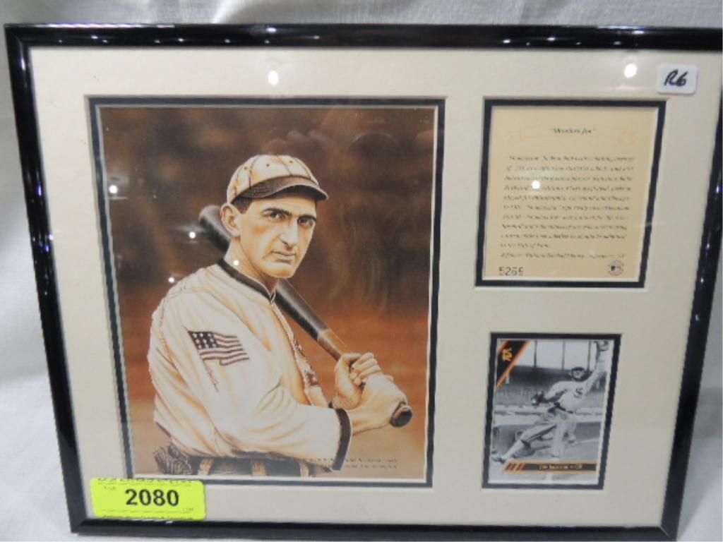 FRAMED BASEBALL LITHOGRAPH "SHOELESS" JOE JACKSON AS SHOWN. MATTED. SEE PHOTO FOR DETAILS.