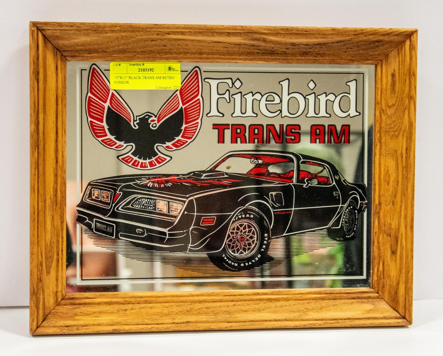 FRAMED BLACK TRANS AM RETRO MIRROR 15" X 11"