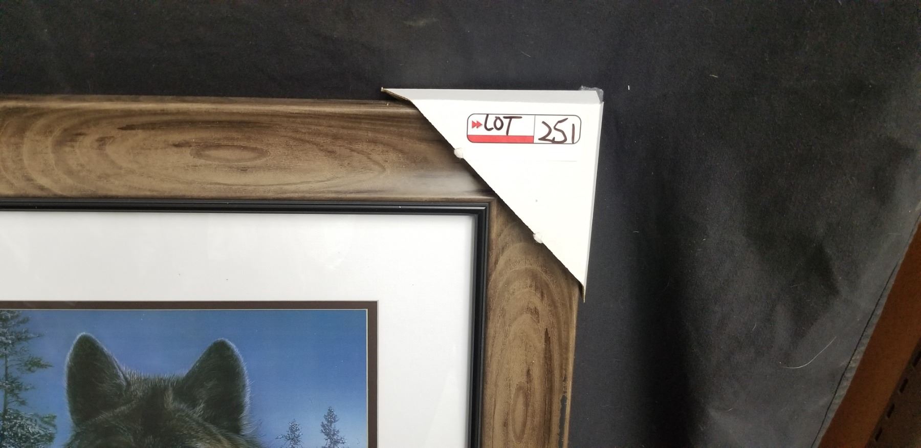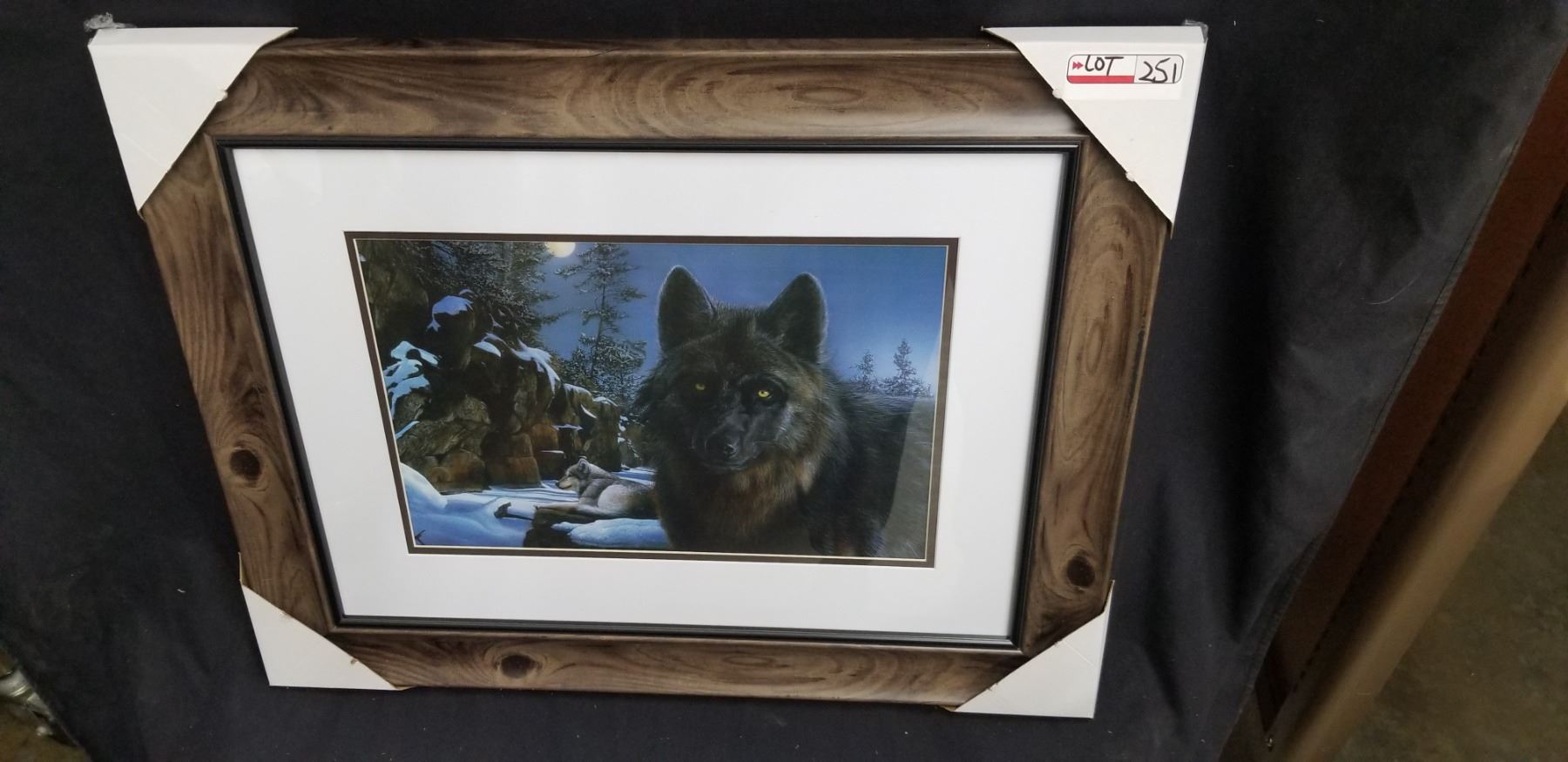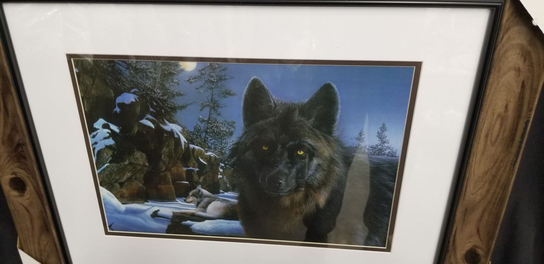 FRAMED BLACK WOLF PRINT 29"W X 23"H