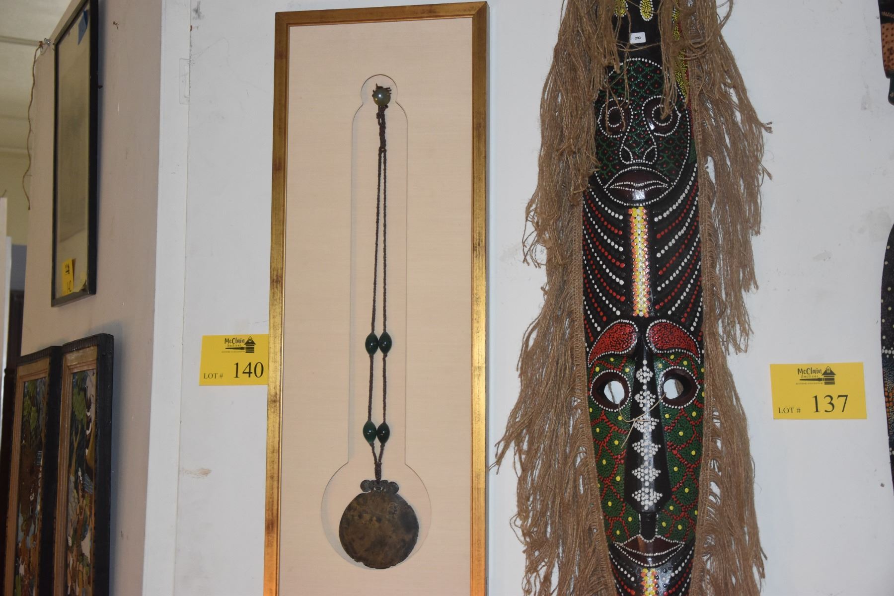 FRAMED BURMESE SHAMAN'S MIRROR NECKLACE, 19TH CENTURY (11 1/2" X 32")