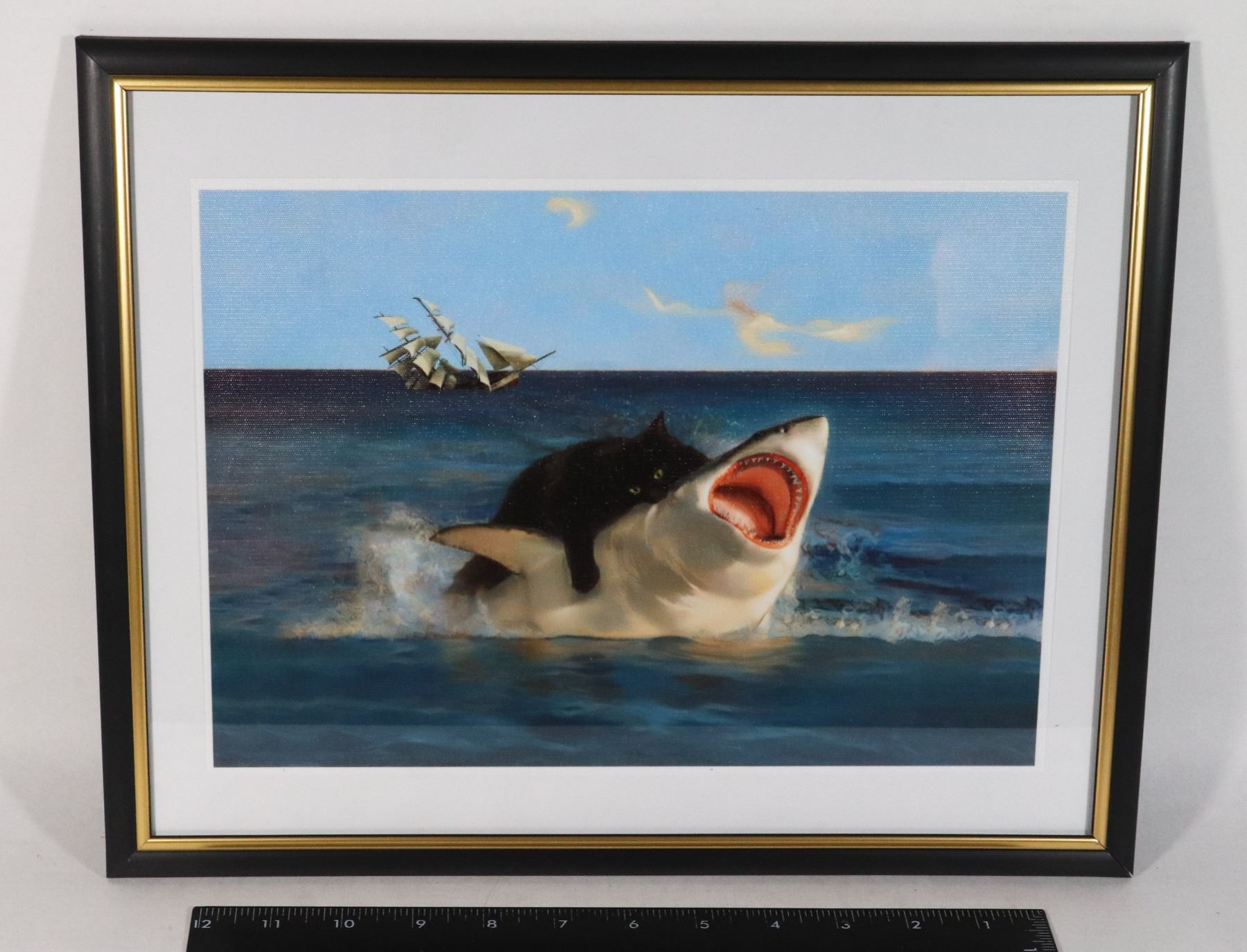 FRAMED CANVAS CAT VS SHARK PICTURE, CAT IS WINNING