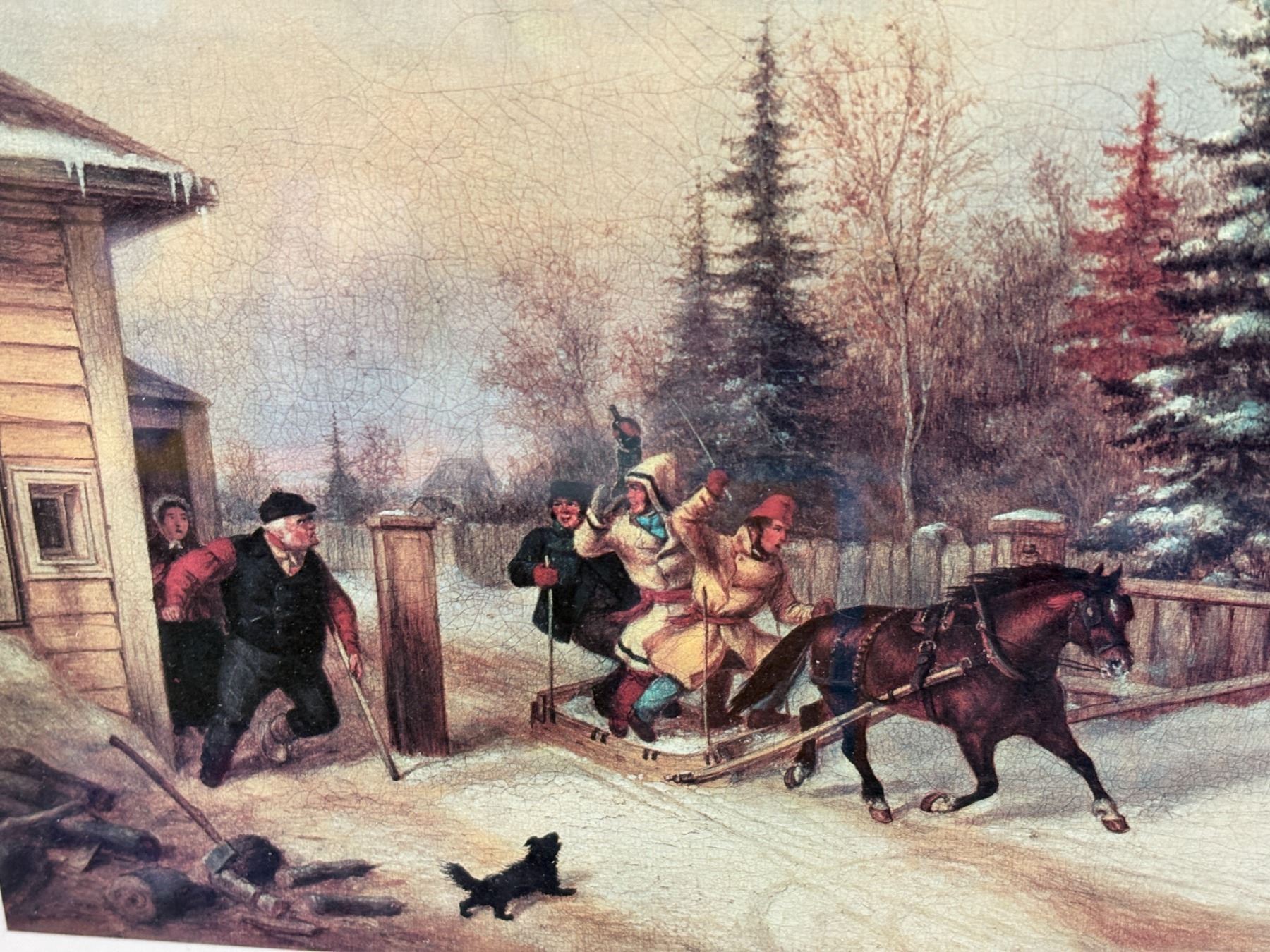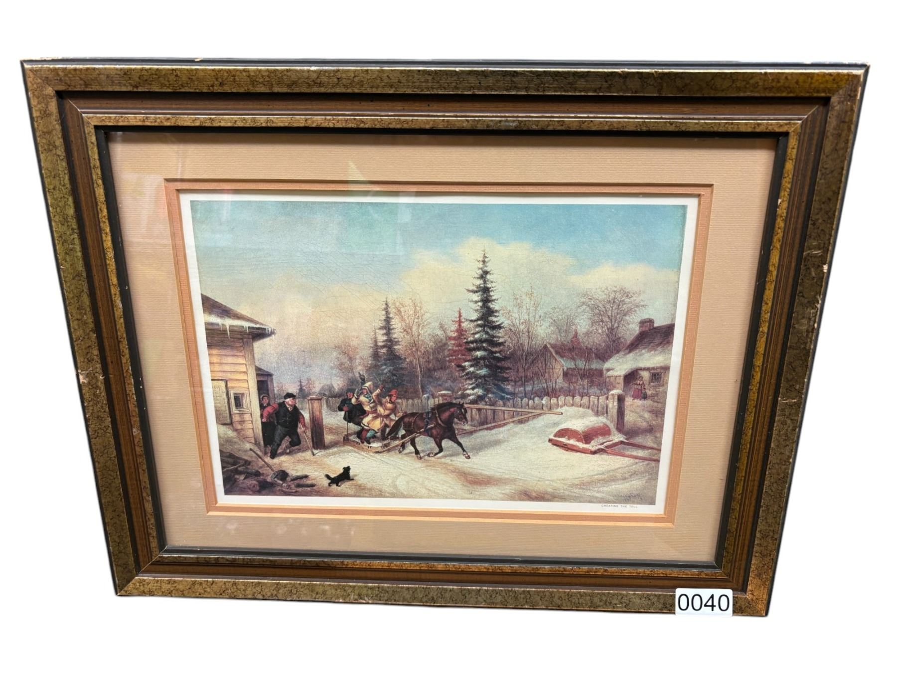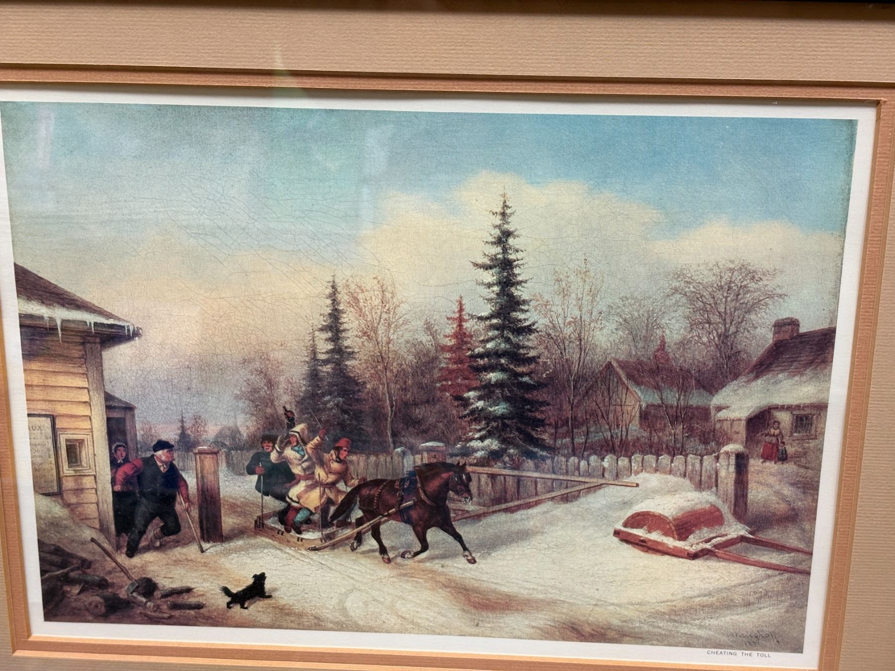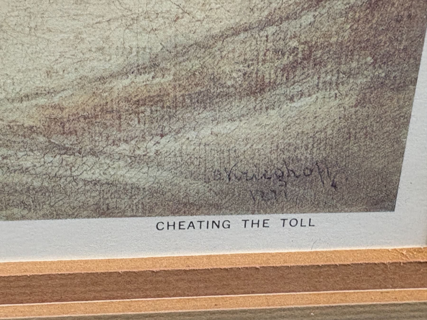 FRAMED "CHEATING THE TOLL " VINTAGE REPRODUCTION PRINT FROM STATE (APPROX - 19in BY 14 1/2in)