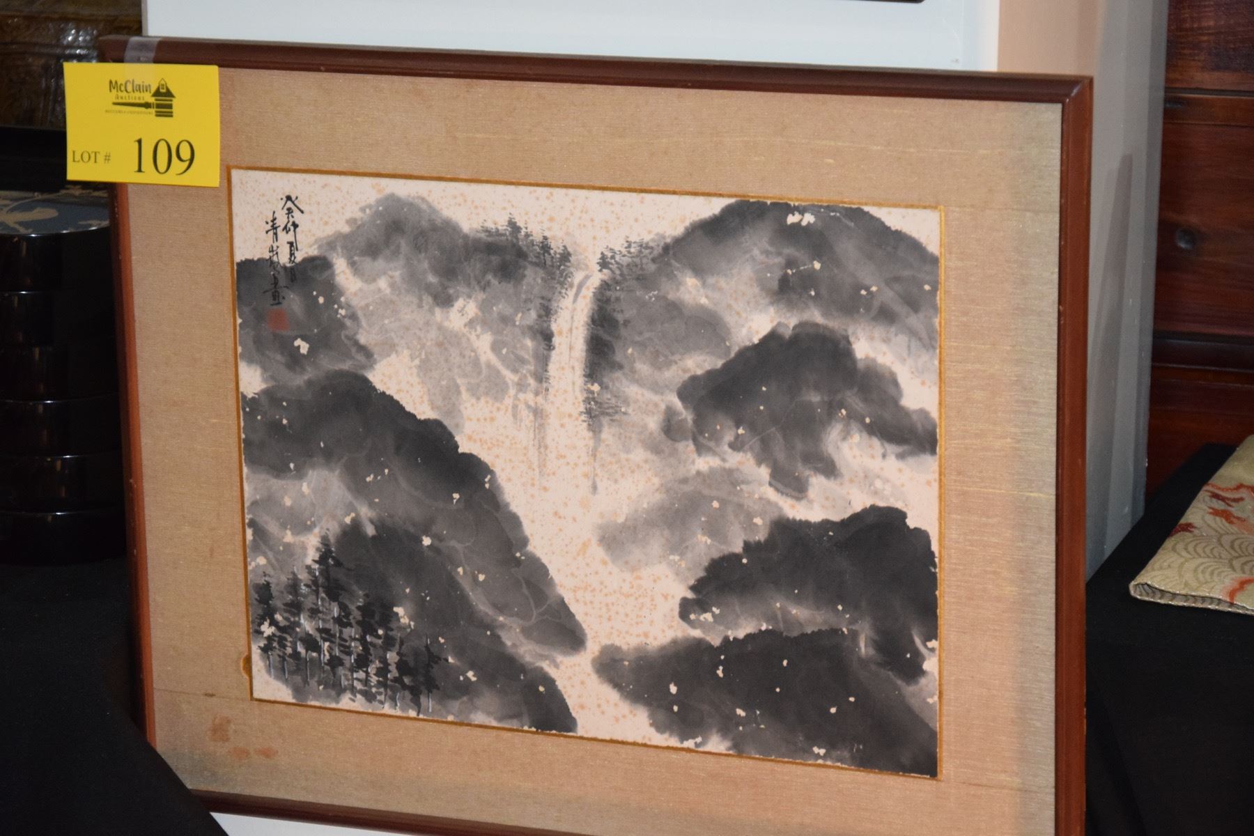 FRAMED CHINESE BRUSH PAINTING, MOUNTAINS; SIGNED