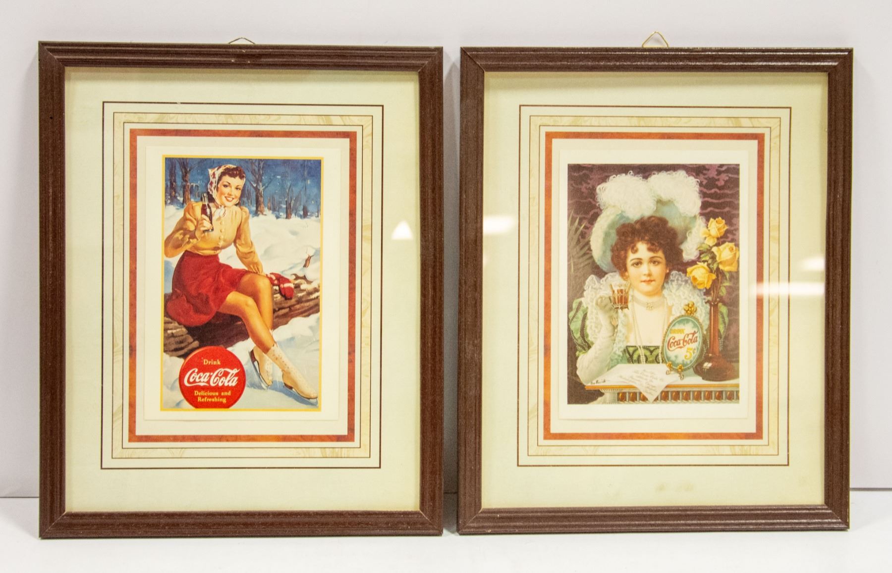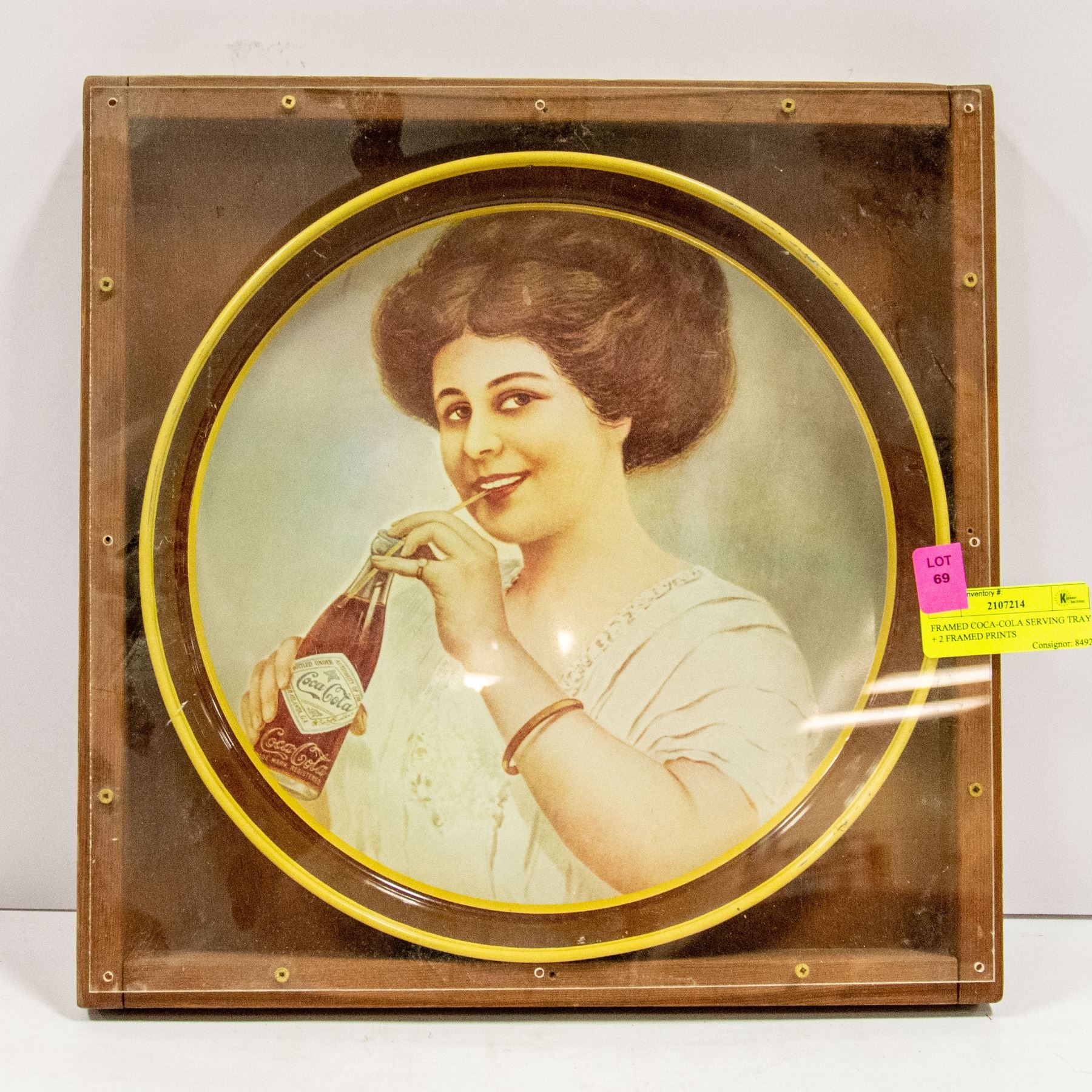 FRAMED COCA-COLA SERVING TRAY + 2 FRAMED PRINTS