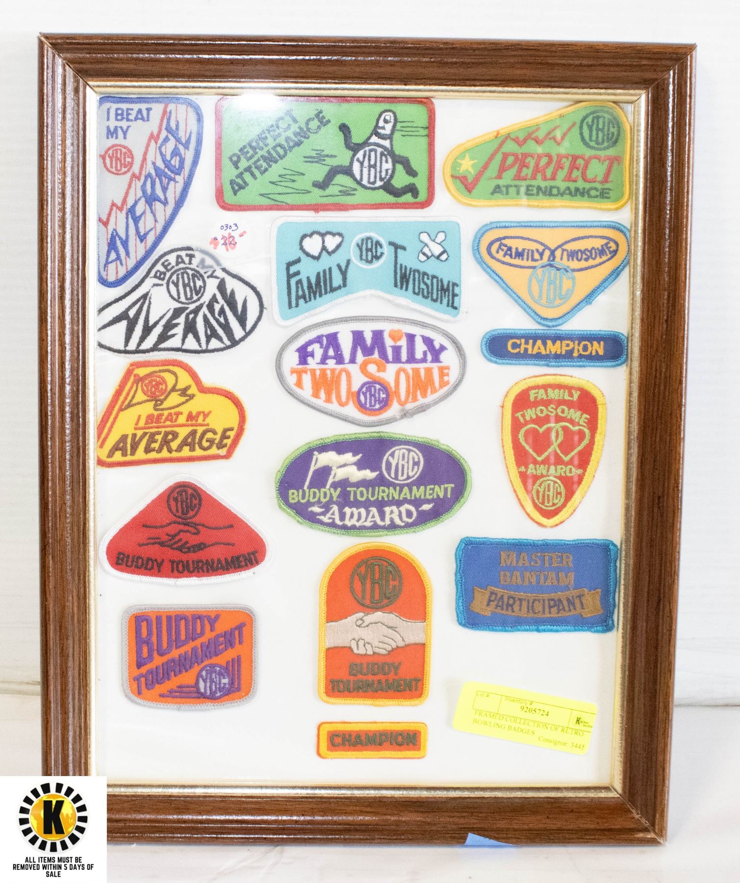 FRAMED COLLECTION OF RETRO BOWLING BADGES