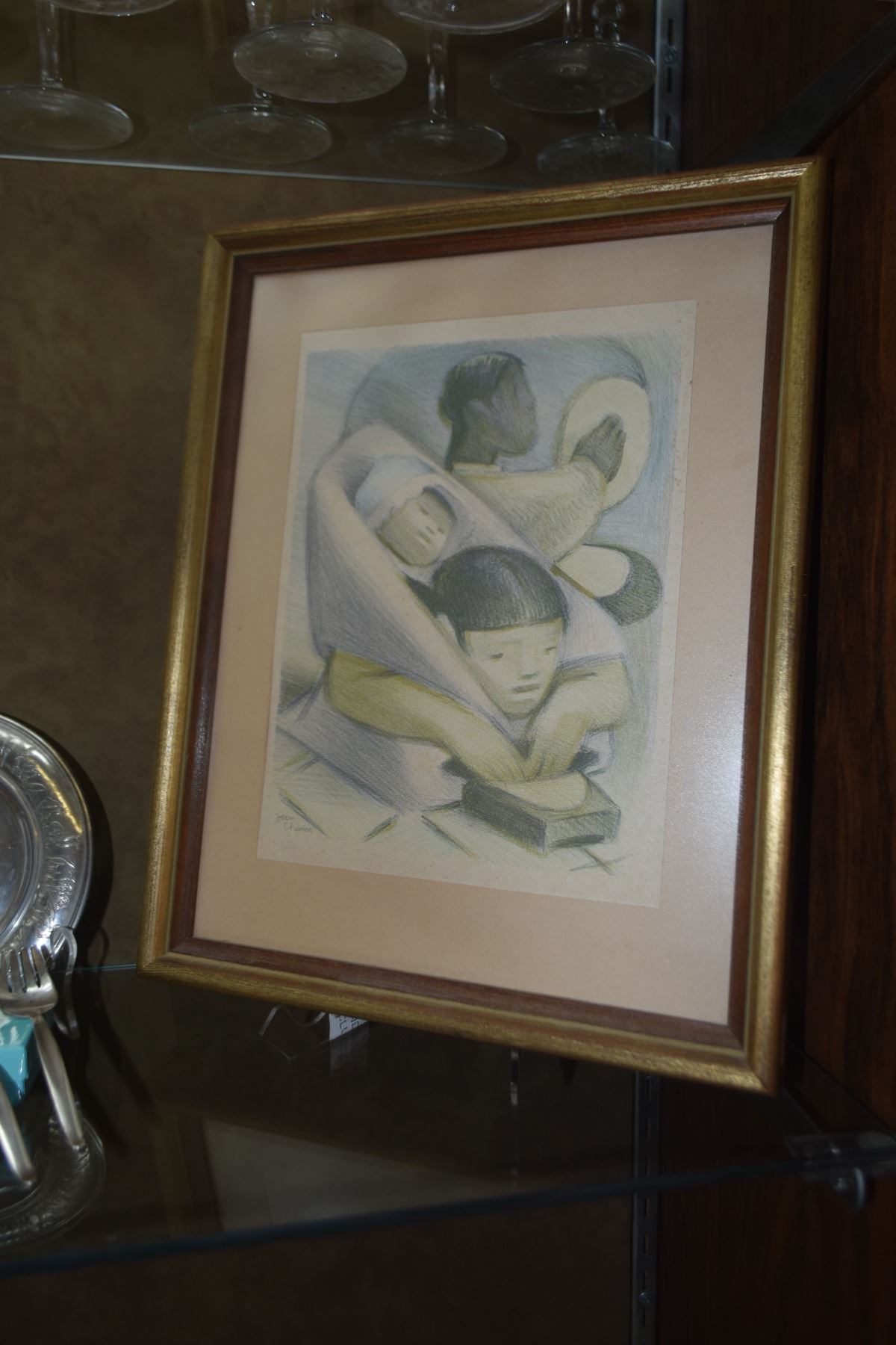 FRAMED COLOR LITHOGRAPH, JEAN CHARLOT (11 3/4" X 14 3/4")