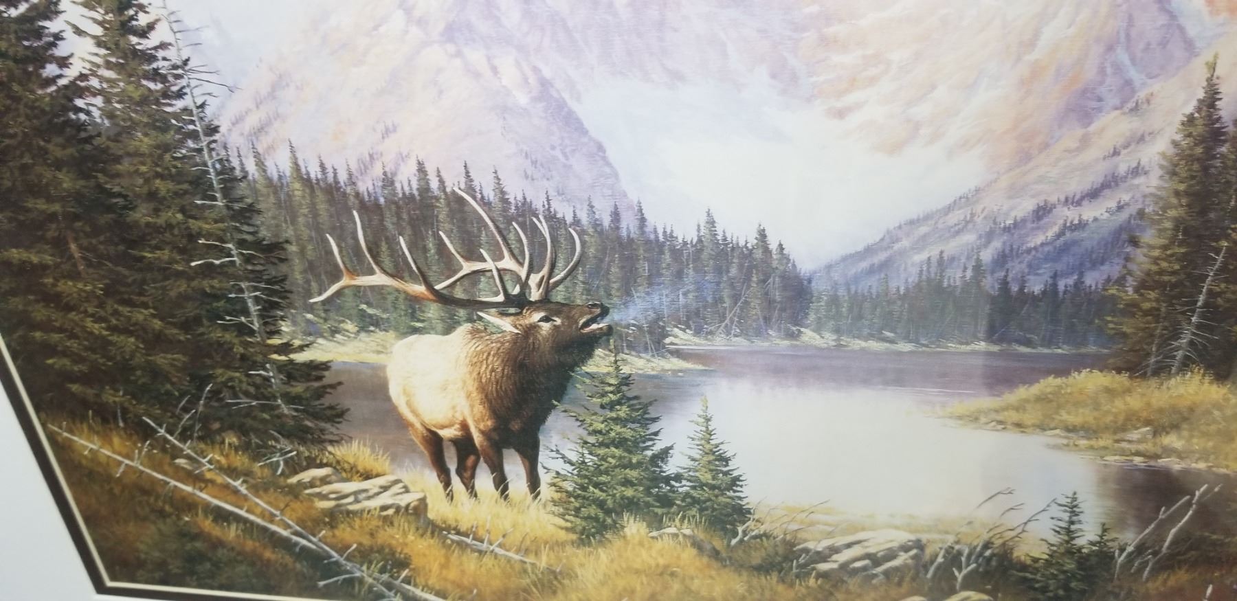 FRAMED ELK PRINT 33"W X 26"H BY DERK