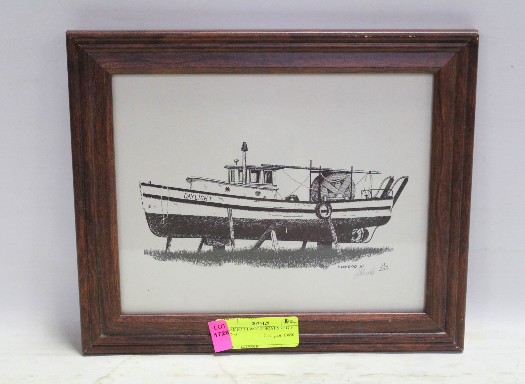 FRAMED 'ELWOOD' BOAT SKETCH 11/200