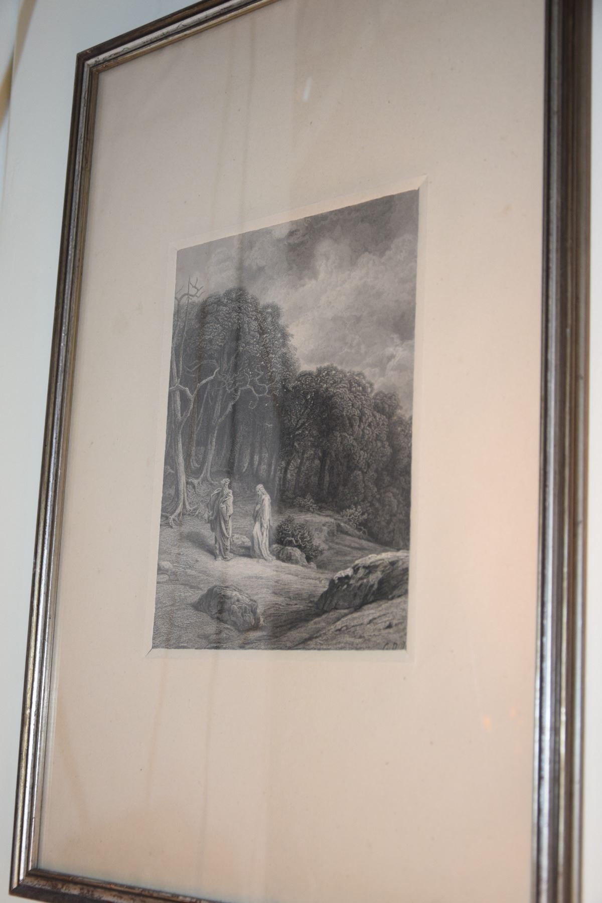 FRAMED ENGRAVING, "VIVIEN & MERLIN ENTER THE WOODS"; GUSTAVE DORE