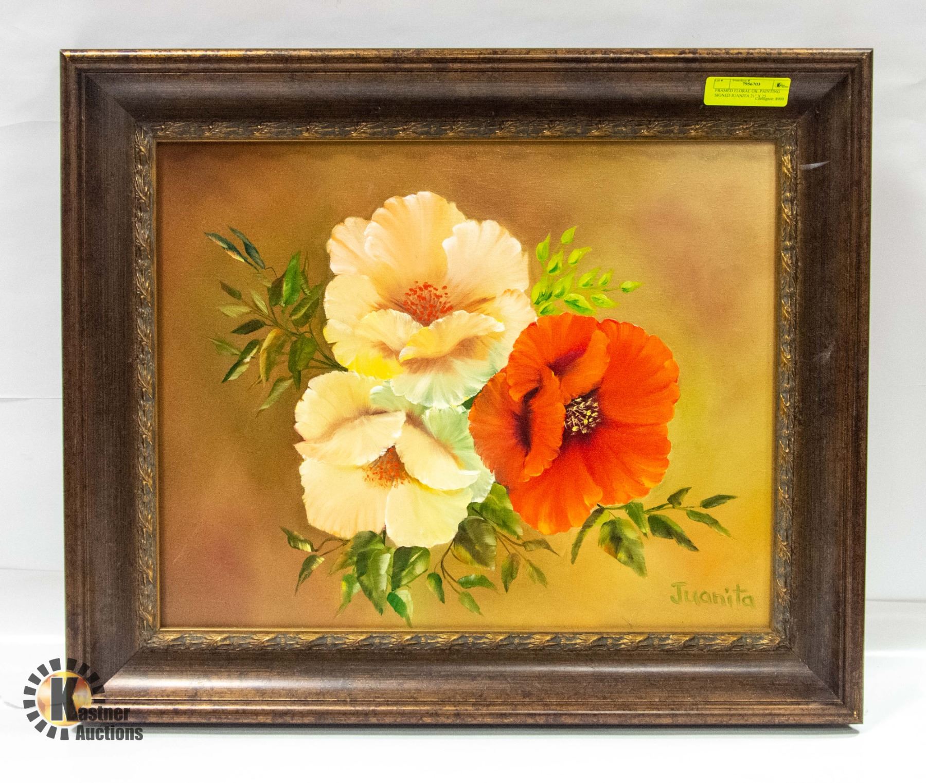 FRAMED FLORAL OIL PAINTING SIGNED JUANITA 21" X 25