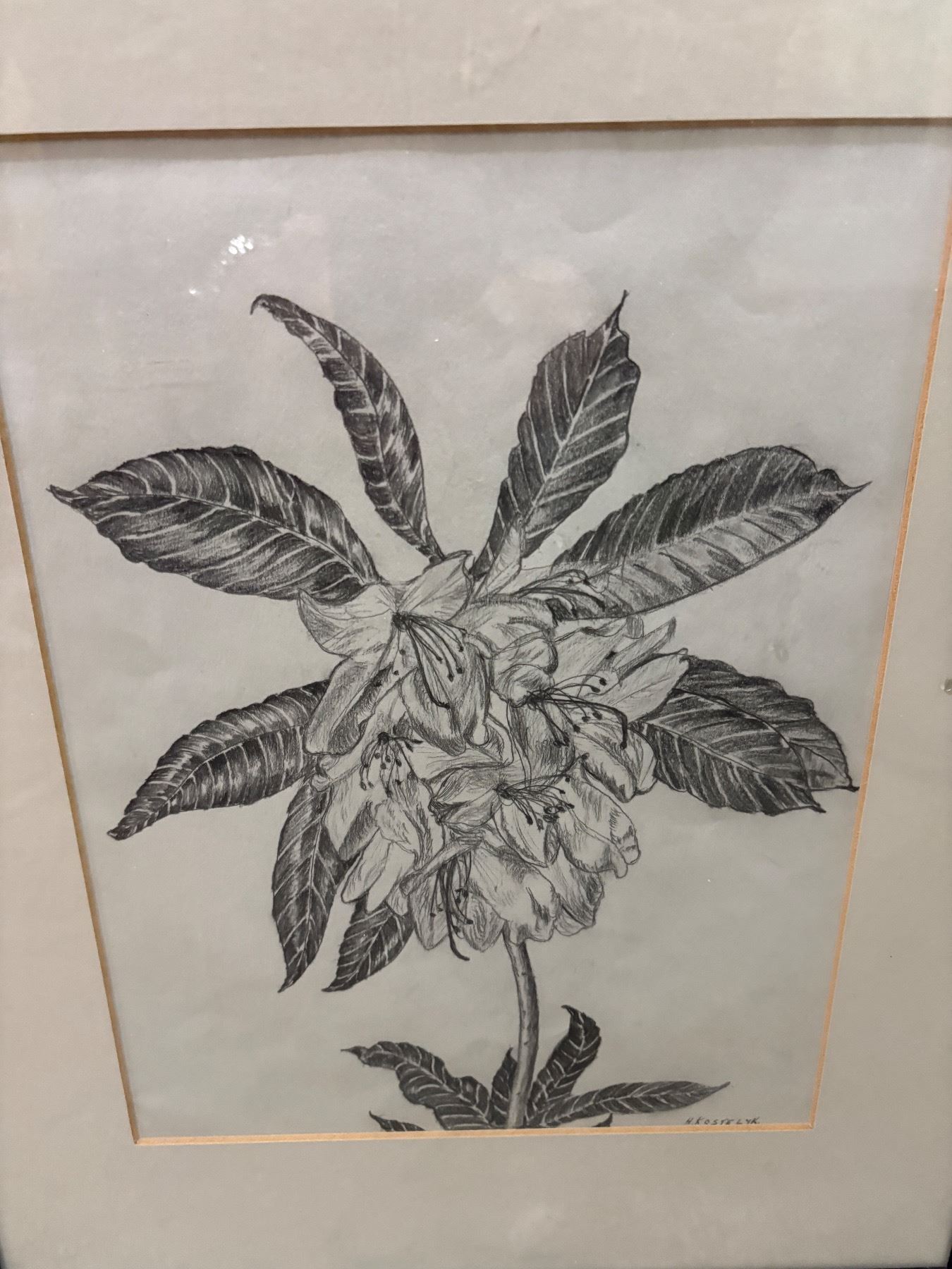 FRAMED FLORAL SKETCH SIGNED BY ARTIST H. KOSTELYK FROM 14.5IN X 18.5IN
