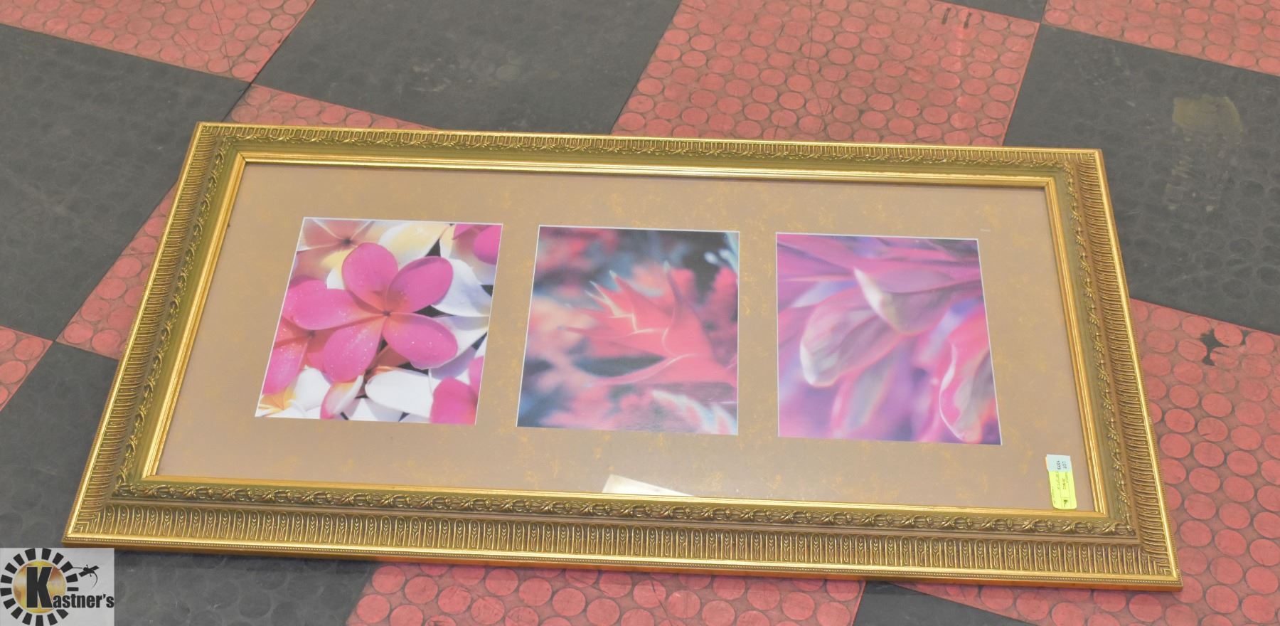 FRAMED FLORAL WALL HANGING 26" X 46"