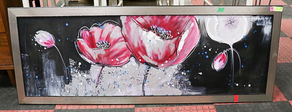 FRAMED FLOWER PAINTING ON CANVAS APPROX 24" X 63"