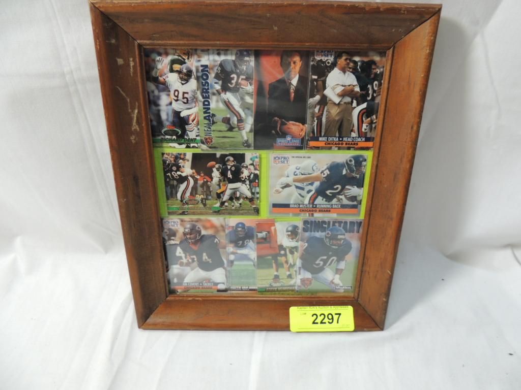 10 FOOTBALL PLAYER CARD IN WOODEN FRAME. TRADING CARDS. MIXED MAKERS AS SHOWN. SEE PHOTO FOR MORE DETAILS.