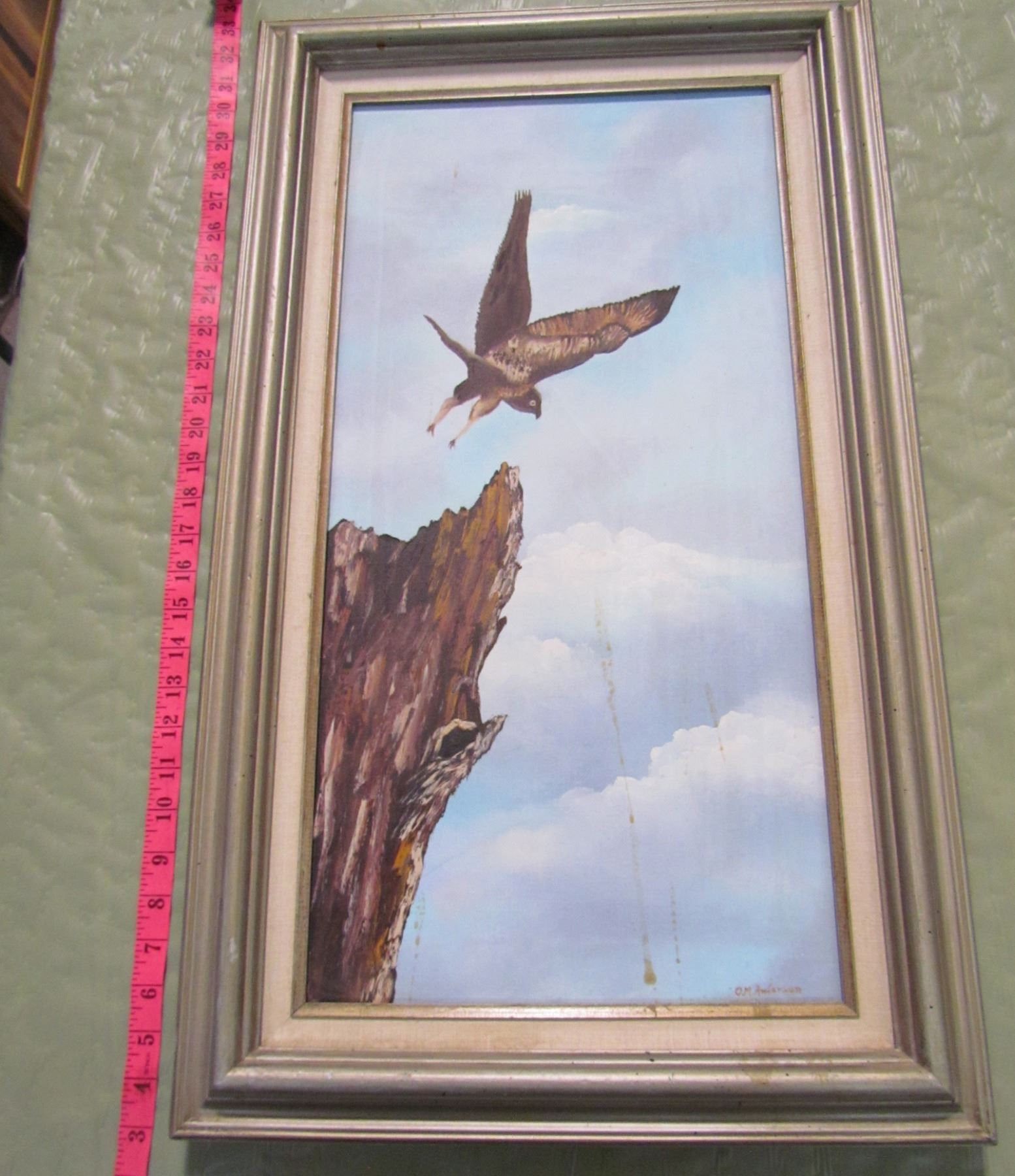 FRAMED HAWK PAINTING ( SPLASH MARKS SHOWN)
