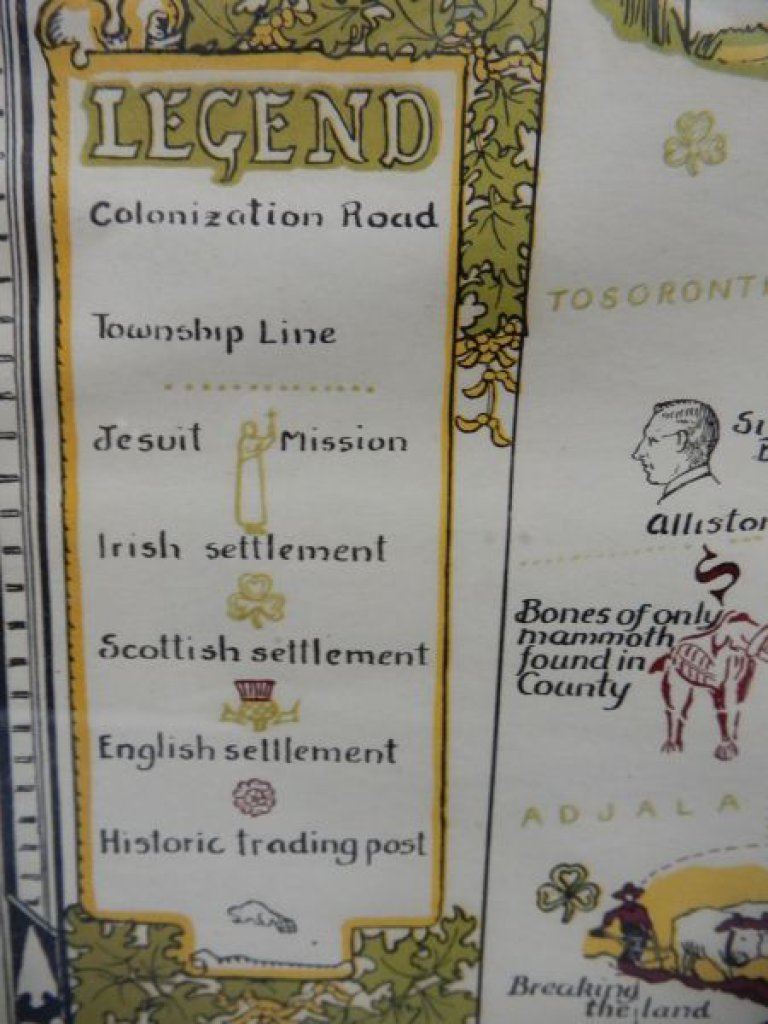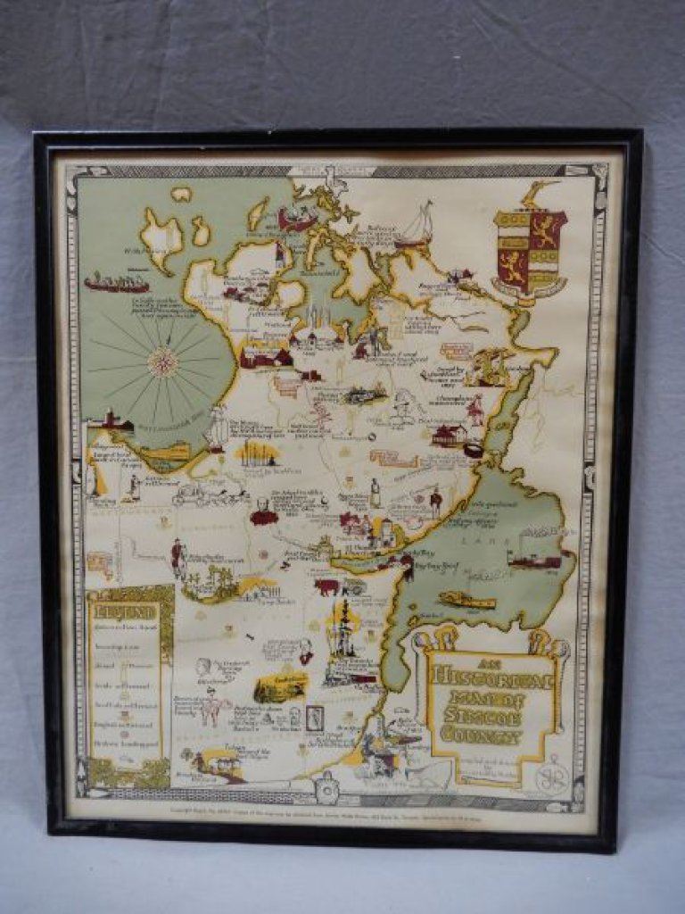 FRAMED HISTORICAL MAP OF SIMCOE COUNTY 18 3/4" X 15 1/2" LOCATION: UPPER LEFT