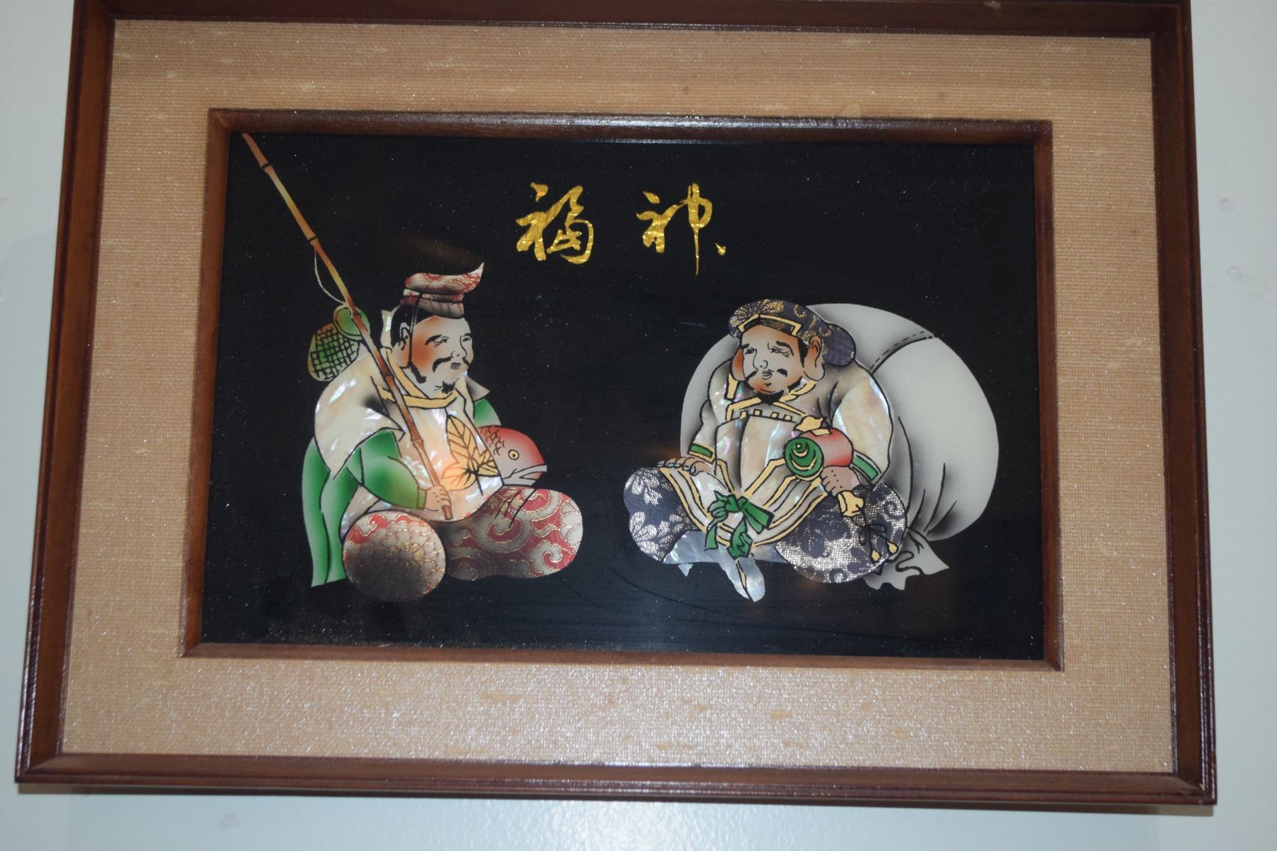 FRAMED IMAGE OF JAPANESE 2 LUCKY GODS, DAIKOKU & EBISU (17" X 12")