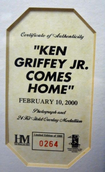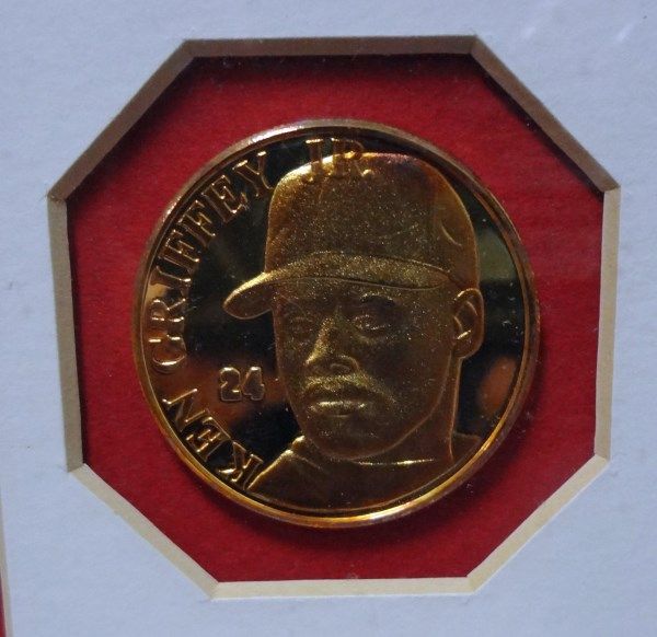 VERY NICE FRAMED PIECE OF KEN GRIFFEY JR AND A 24k GOLD OVERLAY MEDALLION #0264 BY HIGHLAND MINT EST $120-$140