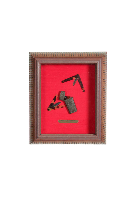 England, late 18th-early 19th century, silver, shell and metal. Chased case holding four lances with shell guards. 2"h. In frame, 11"h. 9 1/4"w. Ex Elisabeth Bennion.
