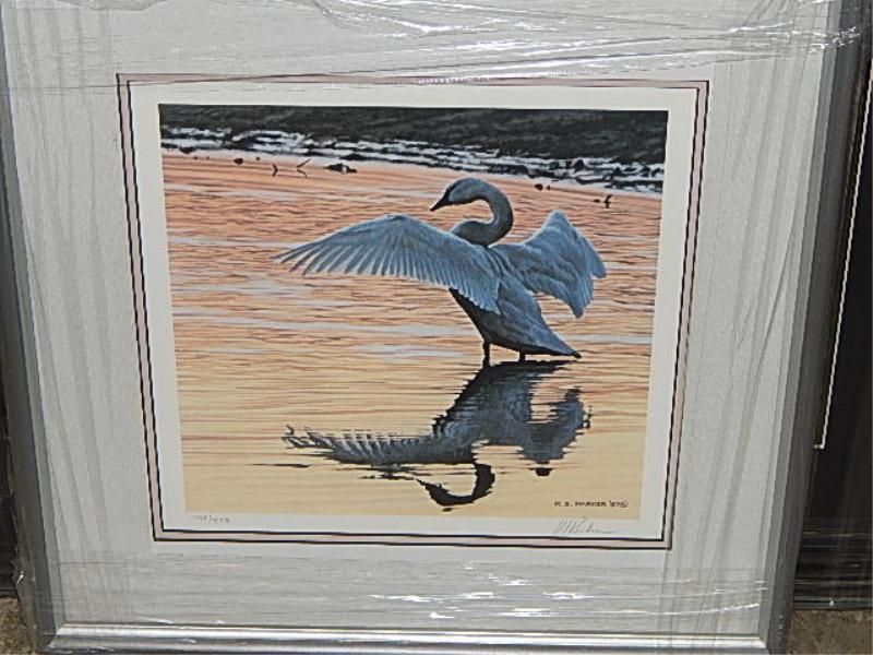 FRAMED LIMITED EDITION PRINT "EVENING REFLECTIONS - TRUMPETER SWAN - RON PARKER - APPROX. GALLERY VALUE $350