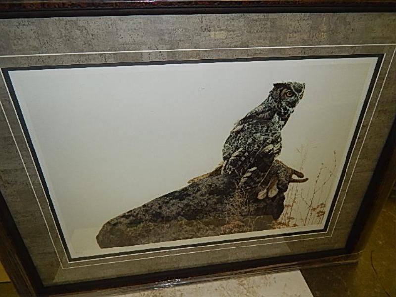 FRAMED LIMITED EDITION PRINT "GREAT HORNED HOWL - GEORGE MACLEAN - APPROX GALLERY VALUE $500
