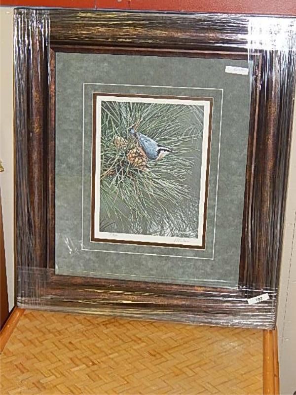 FRAMED LIMITED EDITION PRINT "RED BREASTED NUTWATCH ON PINE CONE - RON PARKER - RETAIL ~$500