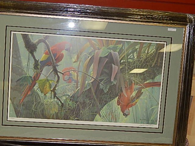 FRAMED LIMITED EDITION PRINT "TROPICAL CANOPY-SCARLET MACAWS" - ROBERT BATEMAN