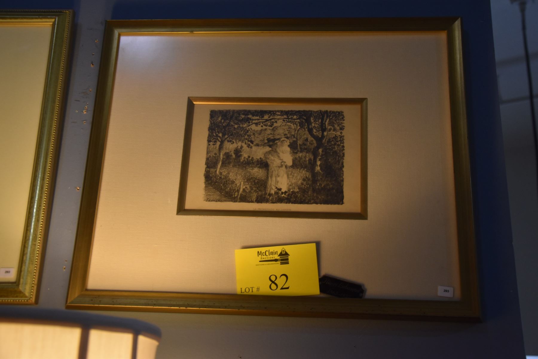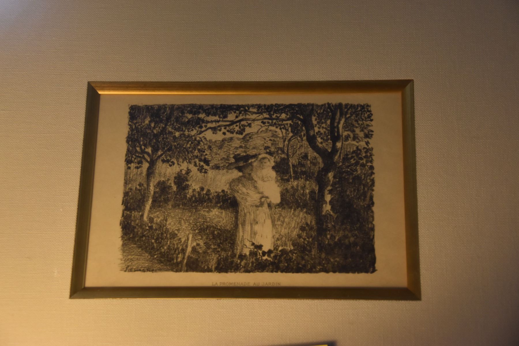 FRAMED LITHOGRAPH, "LA PROMENADE AU JARDIN; SIGNED IN THE PLATE (21 1/2" X 17 1/2")