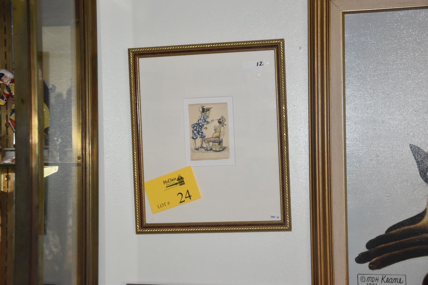 FRAMED LITHOGRAPH, TALL WOMAN, SMALL MAN (13  X 15 3/4 ) & FRAMED MAKE UP BY LE PIERO (12 1/2  X 14