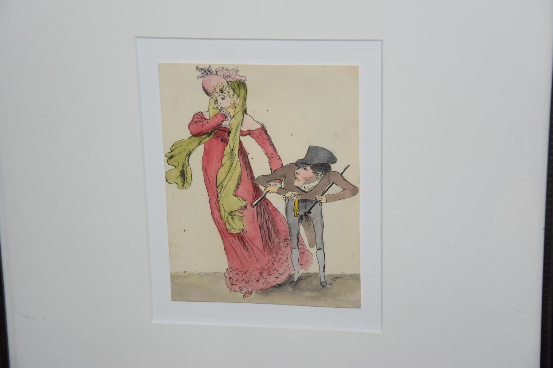 FRAMED LITHOGRAPH, TALL WOMAN, SMALL MAN (13" X 15 3/4") & FRAMED MAKE UP BY LE PIERO (12 1/2" X 14