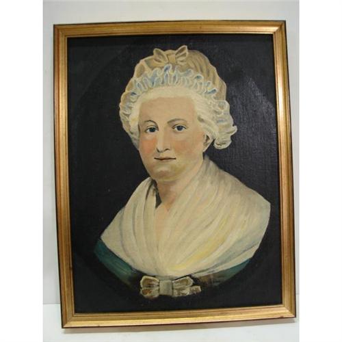 FRAMED MARTHA WASHINGTON PAINTING. Oil on canvas. Unsigned. 17” x 13”