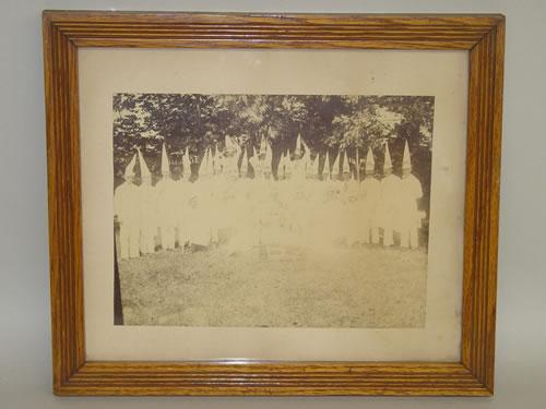 FRAMED MOUNTED PHOTOGRAPH OF A FRATERNAL GROUP IN WHITE DUNCE CAP UNIFORMS MARKED A.O.O.S. (7" X 9 1/2")