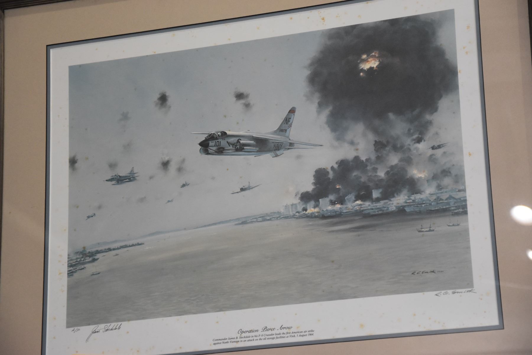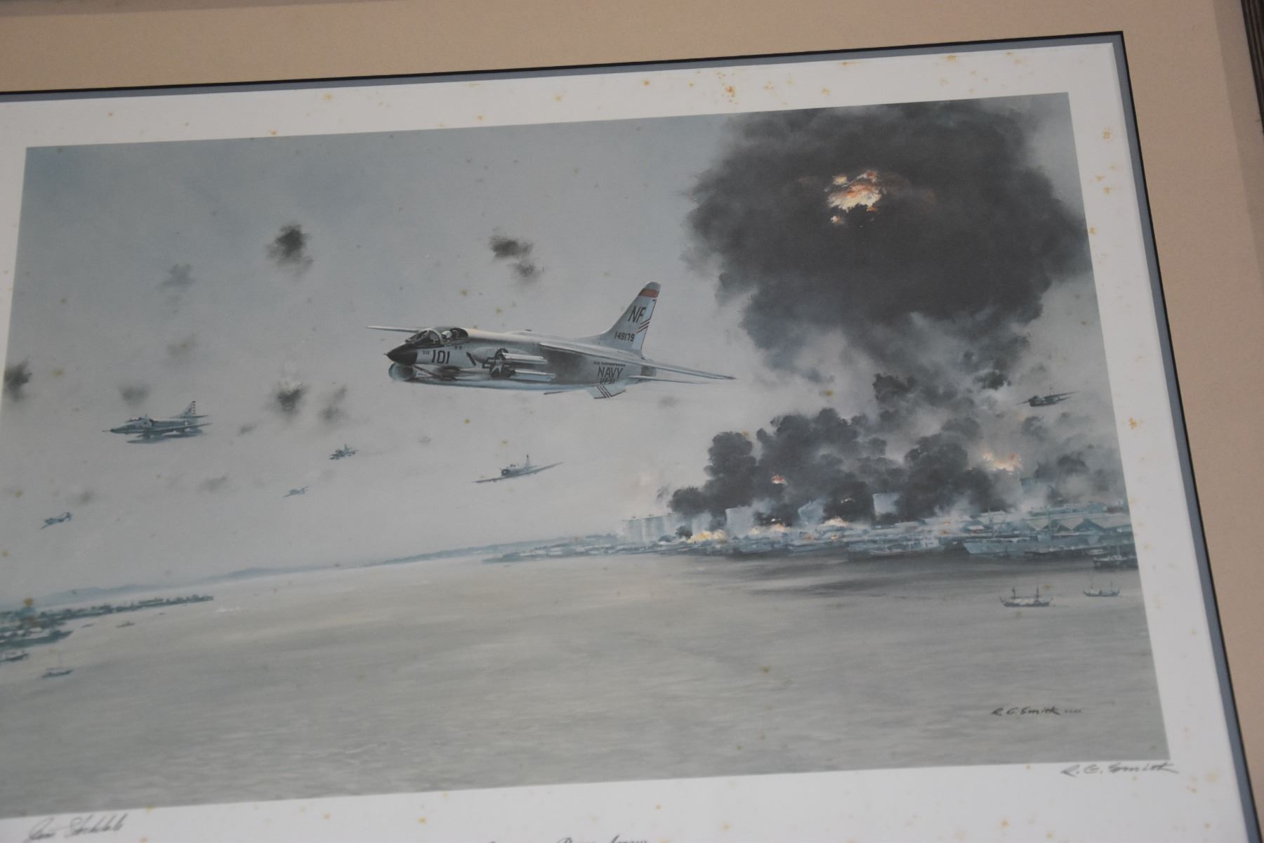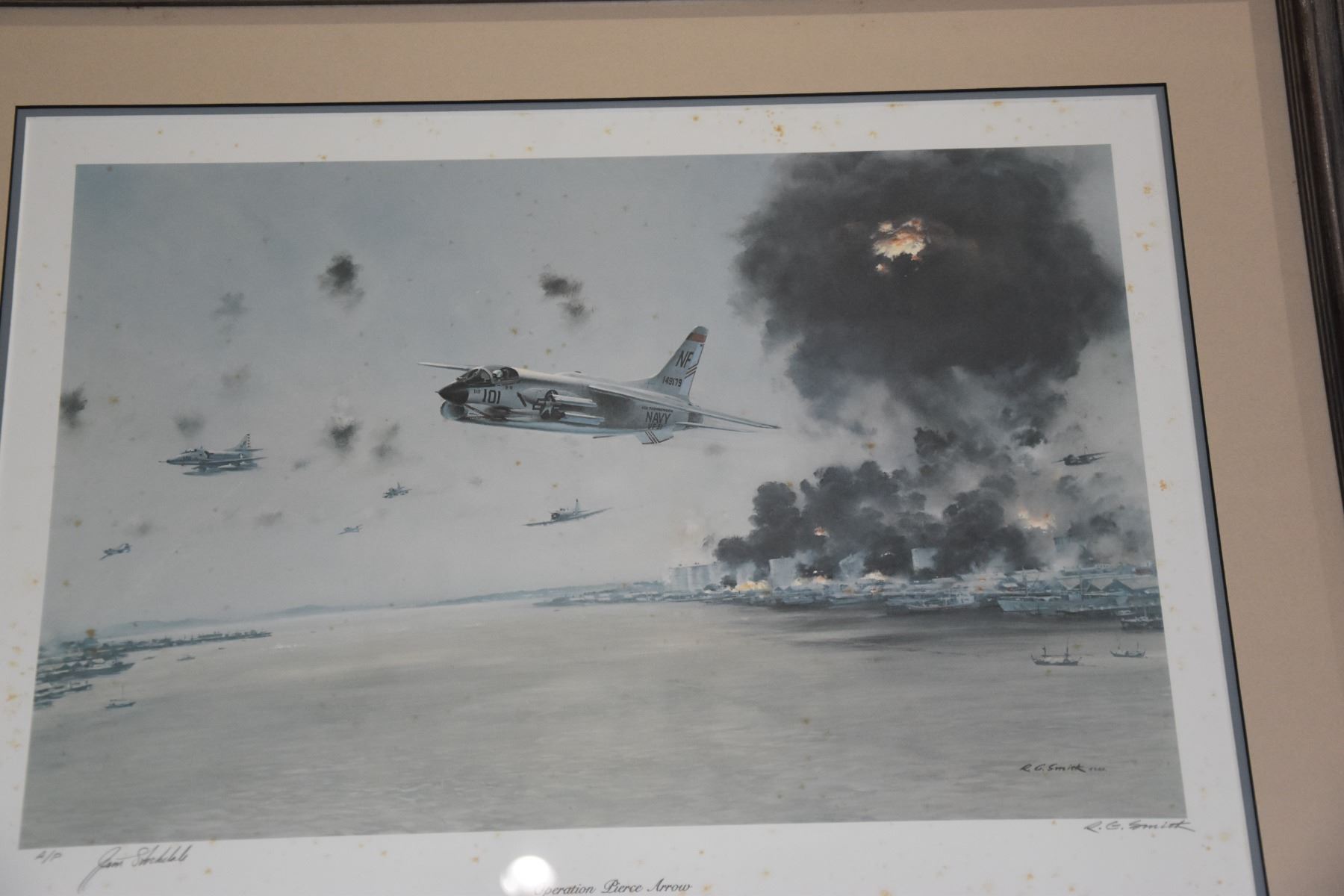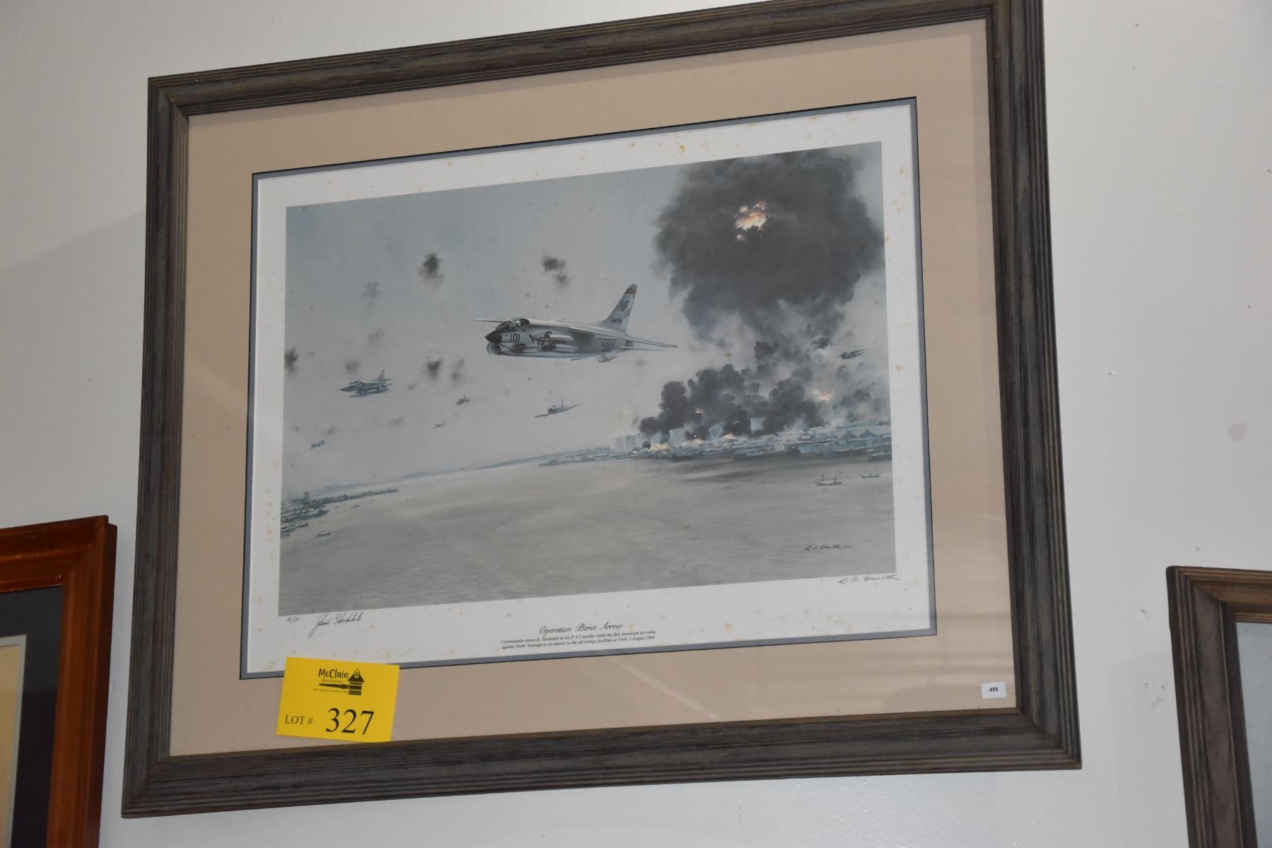 FRAMED NAVEL HISTORICAL ART PRINT, "OPERATION PIERCE ARROW"; SIGNED A/P (33 1/4" X 27 1/4")