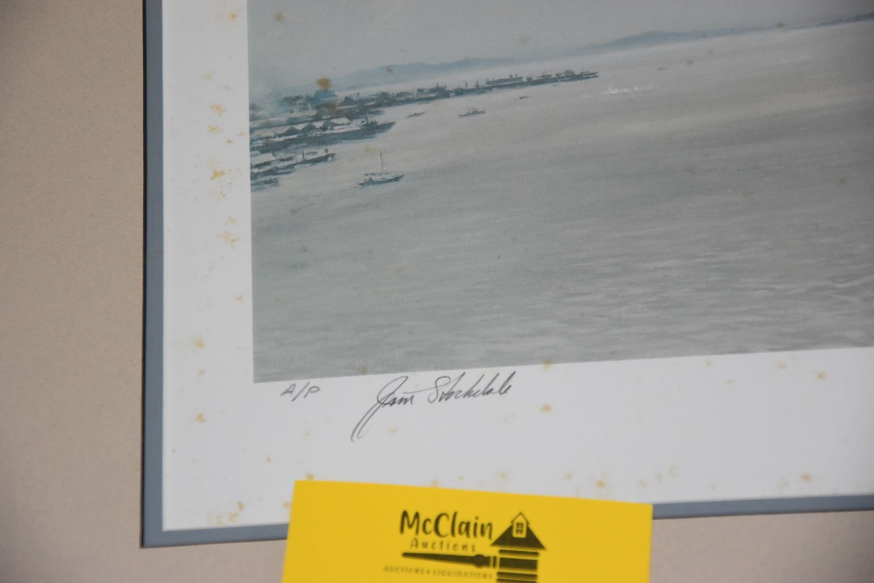 FRAMED NAVEL HISTORICAL ART PRINT,  OPERATION PIERCE ARROW ; SIGNED A/P (33 1/4  X 27 1/4 )