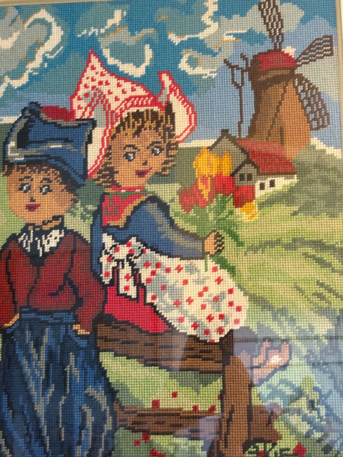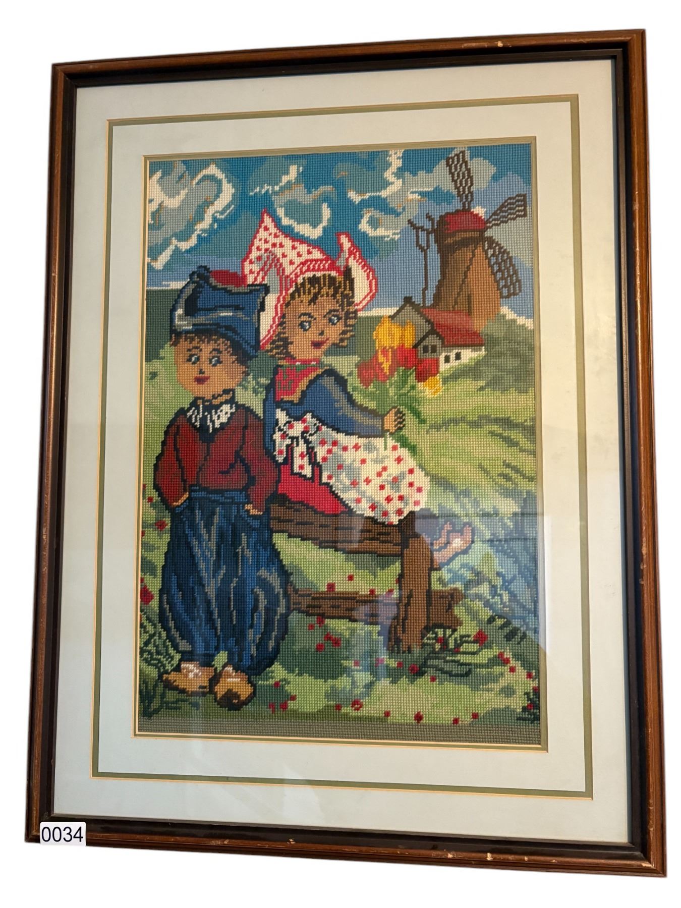 FRAMED NEEDLE POINT "COUNTRY SIDE " ART WALL HANGING FROM STATE(APPROXIMATELY - 21inches BY 27 1/2 inches)