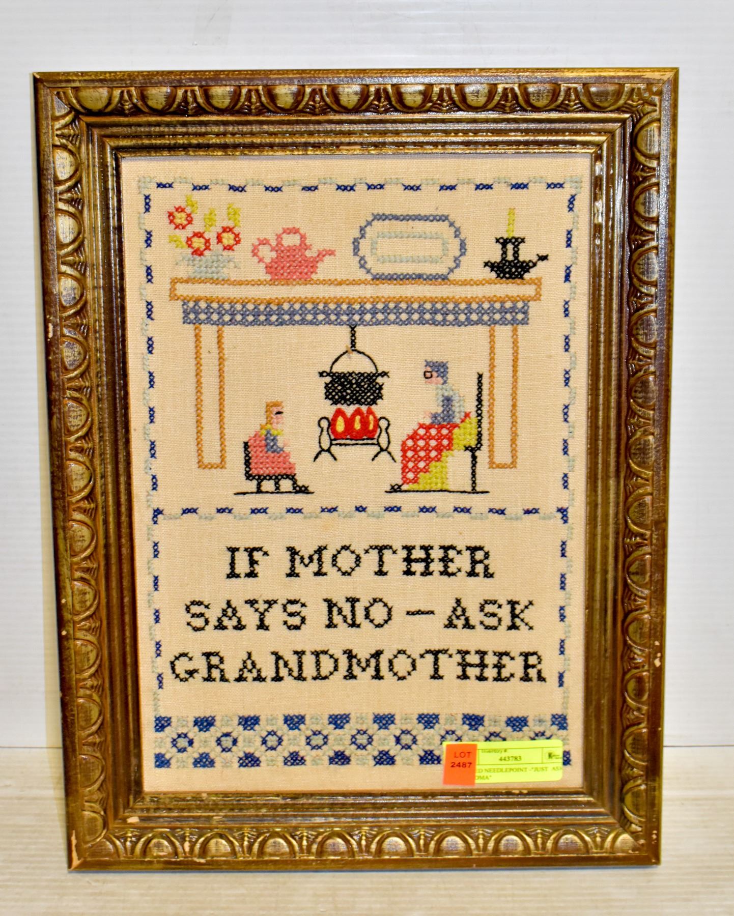 ARTIST UNKNOWN. FRAMED NEEDLEPOINT 13" X 17"