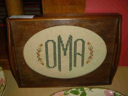 FRAMED NEEDLEPOINT TRAY W/ INITIALS O.M.A