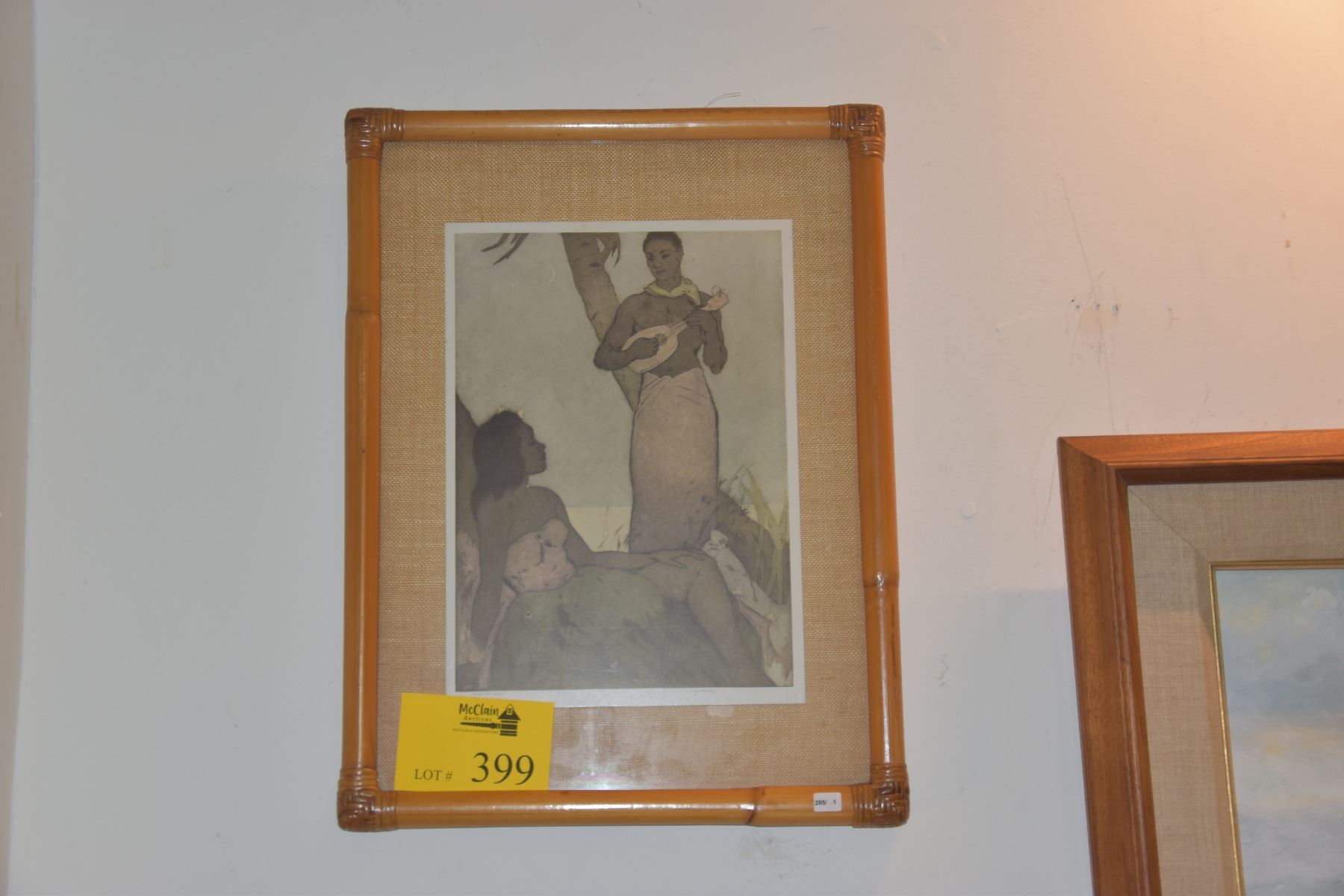 FRAMED OFFSET PRINT, "HAWAIIAN NIGHTS"; SIGNED JOHN KELLY (13 1/2" X 20 1/2")